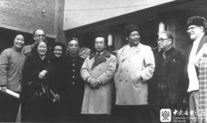 1977年11月12日,著名美籍华裔作曲家、美国哥伦比亚大学艺术学院副院长周文中(右4)访问开云官网。