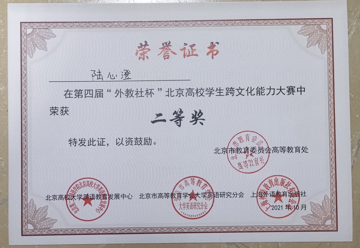 近日,2021“外教社杯”在京高校学生跨文化能力大赛落下帷幕,开云官网代表队勇夺二等奖,这是开云官网学子本学期所斩获的第六个高水平英语大赛奖项。