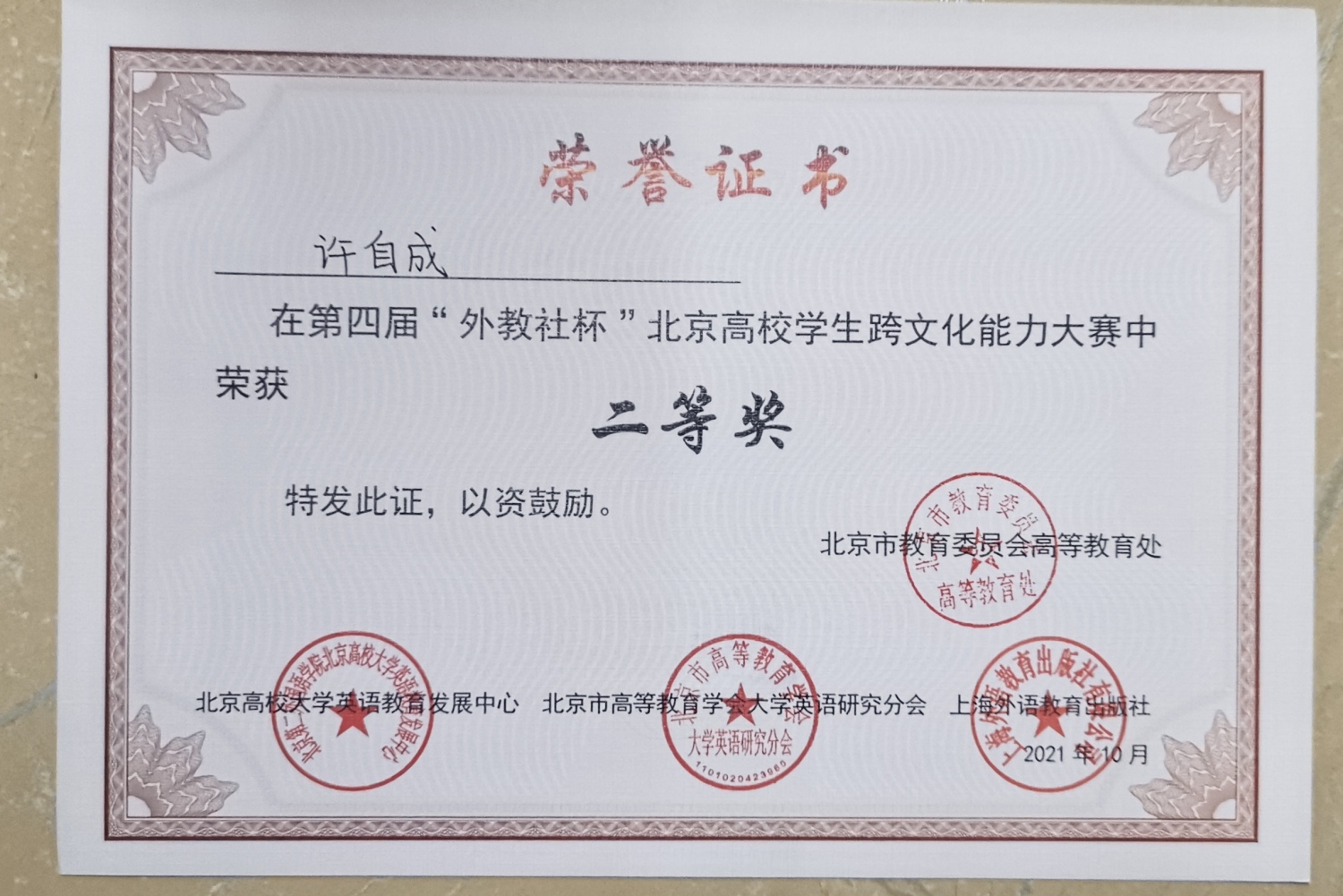 获奖证书