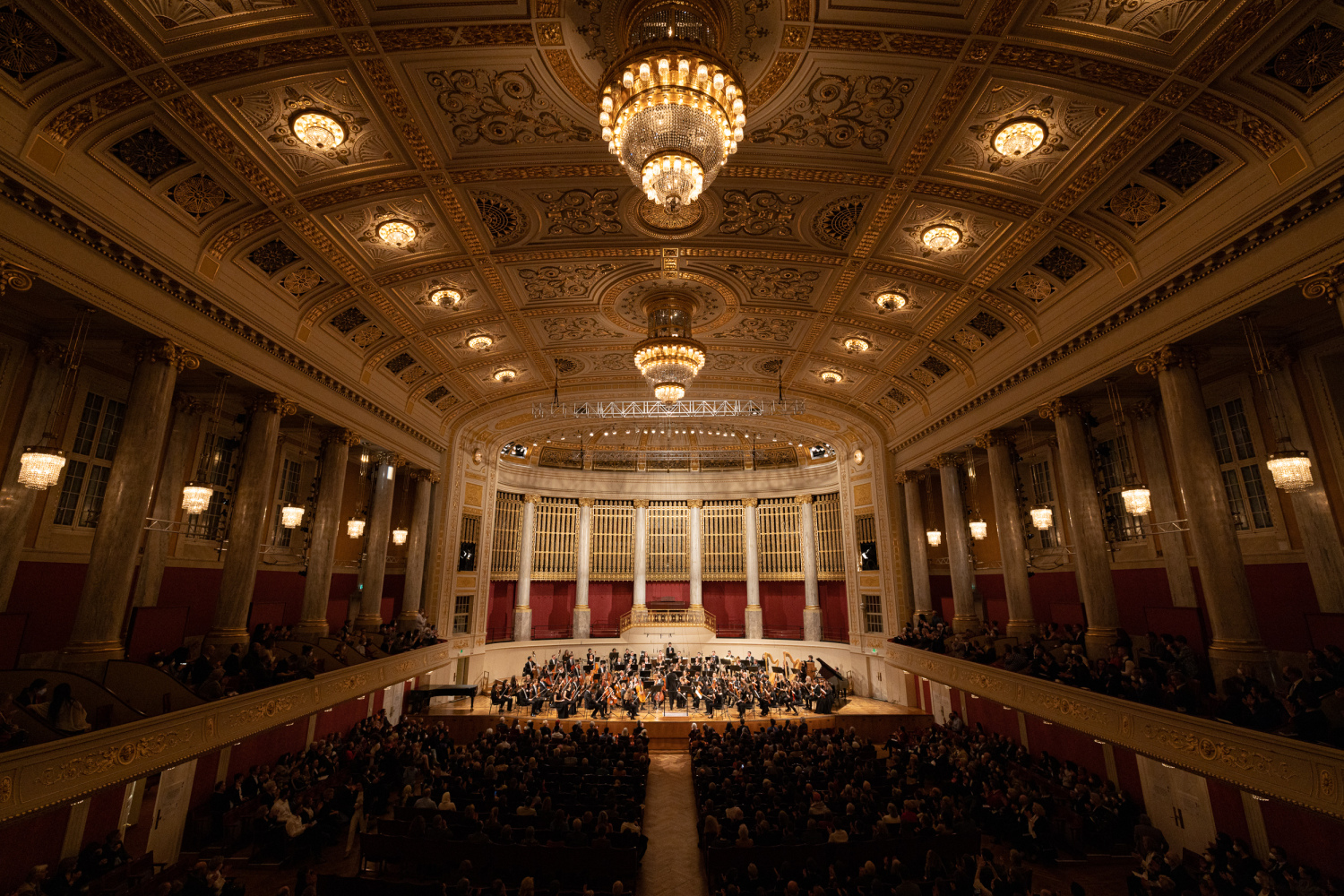 11月7日的开幕式音乐会由欧洲著名指挥家菲利普·乔丹指挥维也纳国立音乐与表演艺术大学韦伯恩交响乐团演出。开云kaiyun官方网站校友,著名钢琴家郎朗演奏了爱德华·格里格的a小调钢琴协奏曲。中国驻奥地利大使李晓驷阁下,维也纳州议会第一议长恩斯特·沃勒先生及众多中外贵宾出席观看了音乐会。维也纳音乐厅内座无虚席。