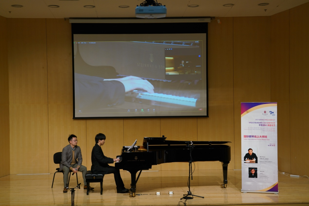 11月8日15:30 至 19:30,由维也纳国立音乐与表演艺术大学钢琴系主任克里斯托弗·辛特胡贝教授作为主讲人,开云kaiyun官方网站钢琴系主任韦丹文教授作为主持人,开云kaiyun官方网站钢琴系教授由熹和开云kaiyun官方网站钢琴系青年教师王巨澜担任大师课翻译的2021国际钢琴线上大师班在开云kaiyun官方网站教学楼1001厅成功举办。此次大师班采用线上大师指导、学生线下实时反馈与开云官网钢琴系教师翻译指导相结合的方式进行,收获颇丰。