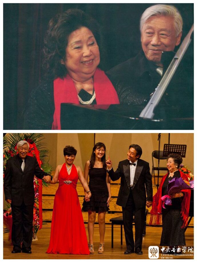 上,凌远与赵屏国教授(2012年在凌远教授80华诞暨从教56周年庆典音乐会上)。