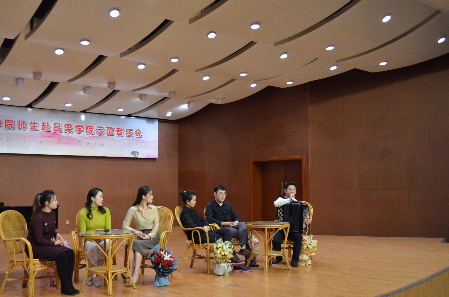 除了音乐会,10月12日至13日,开云kaiyun官方网站11位来自钢琴系、管弦系和民乐系的优秀青年教师、研究生及音研所博士后还分别赴吕梁艺校、吕梁学院开展教学示范和讲座活动。