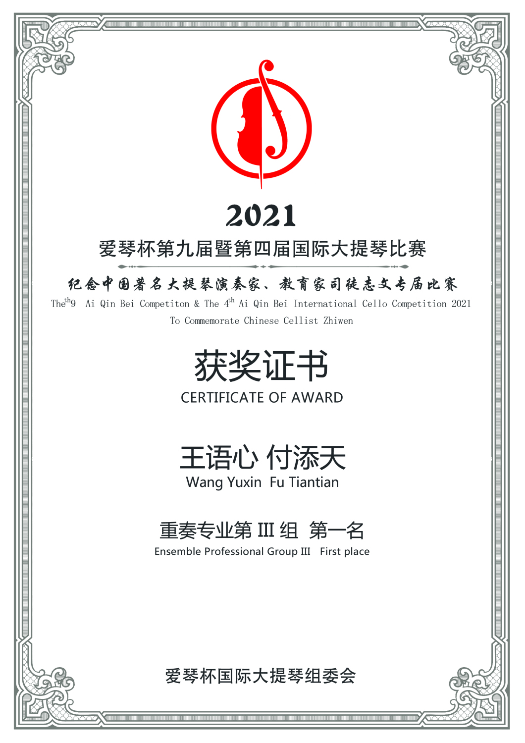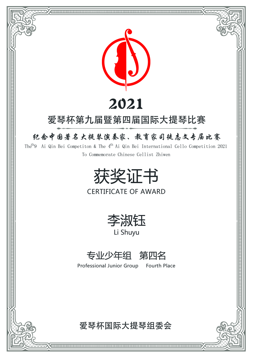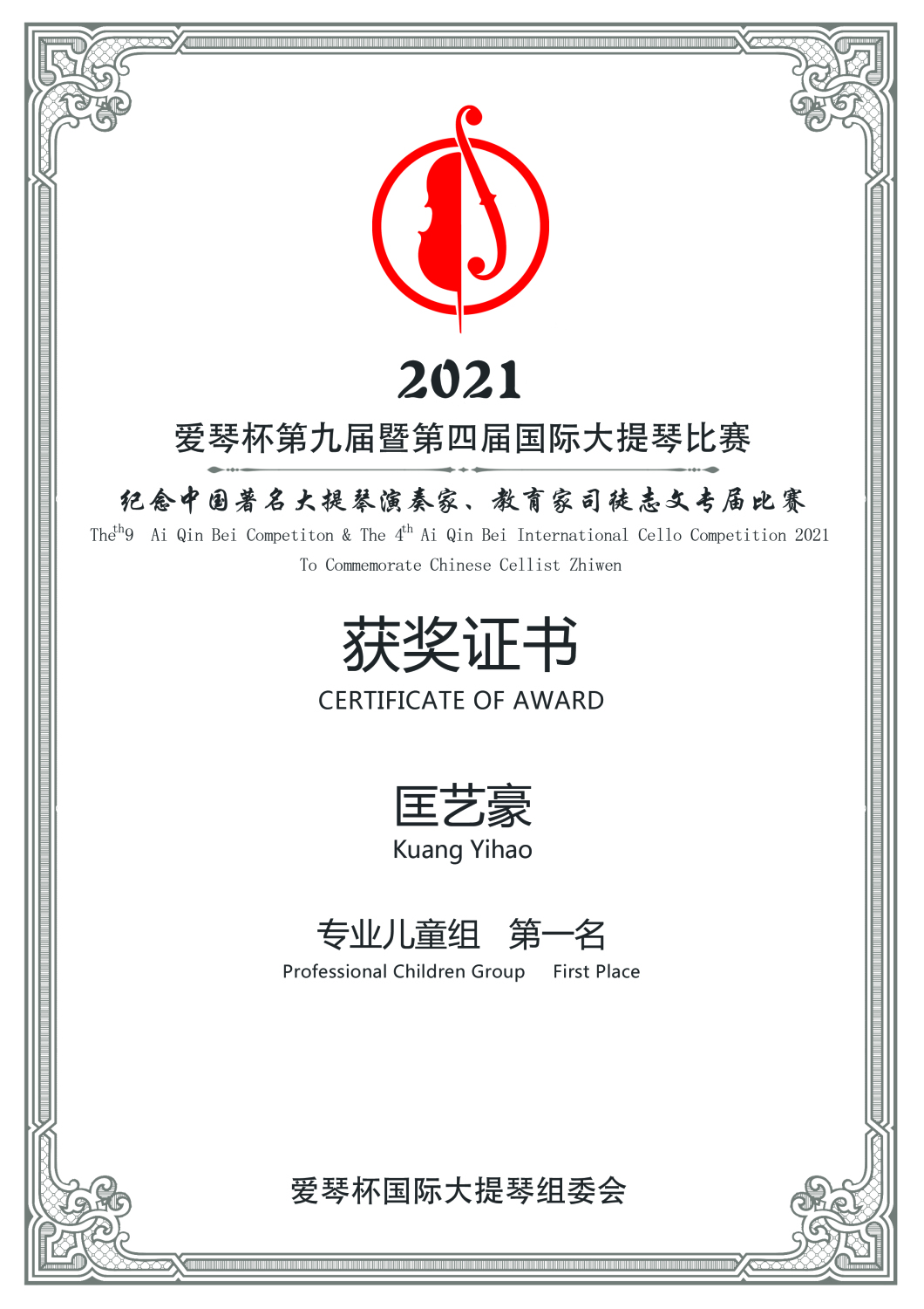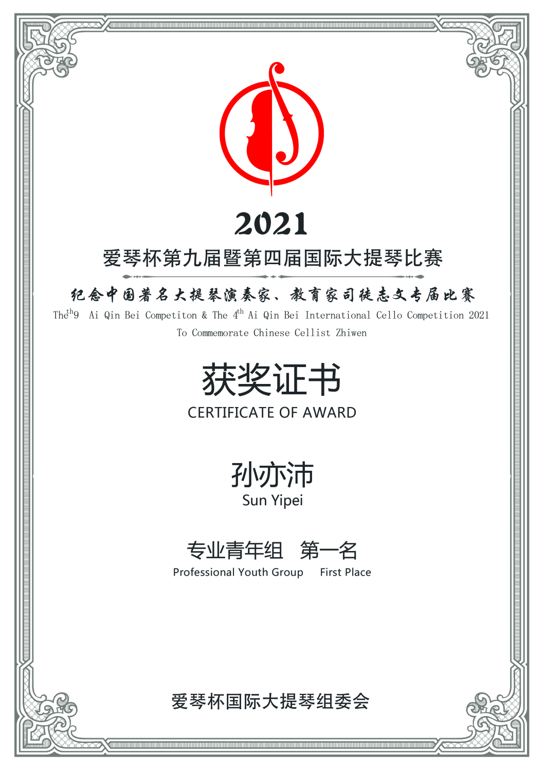在刚刚结束的第九届暨第四届爱琴杯国际大提琴比赛中,开云官网多名学生获得专业组重大奖项。