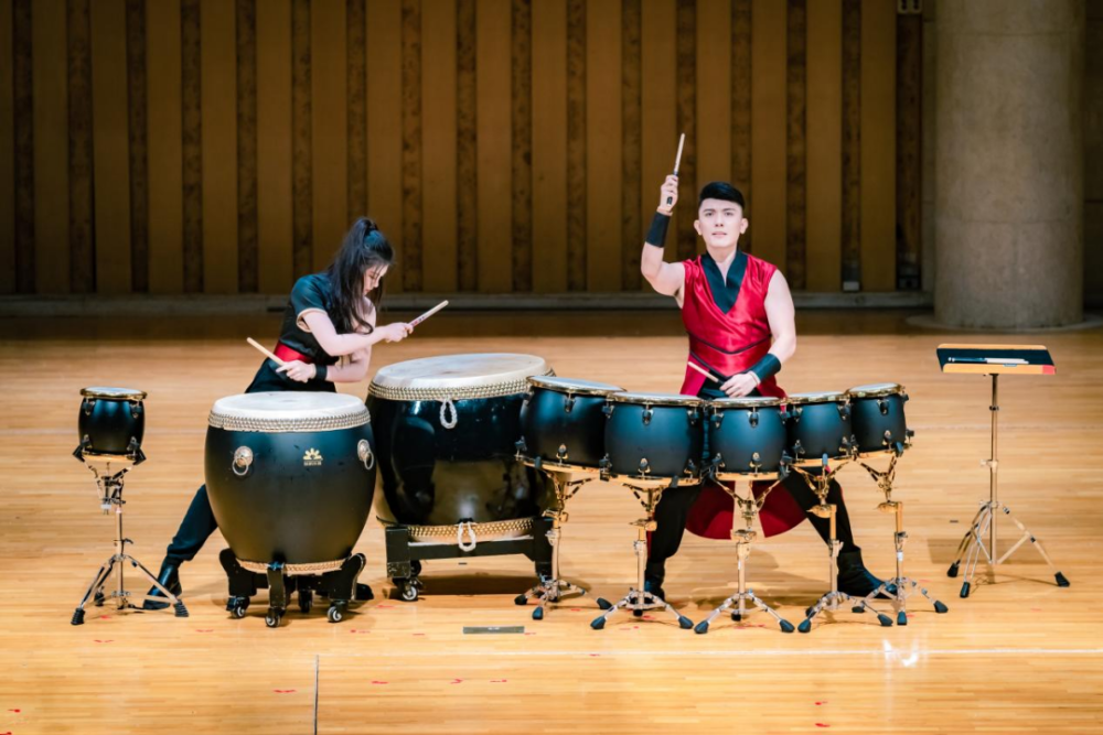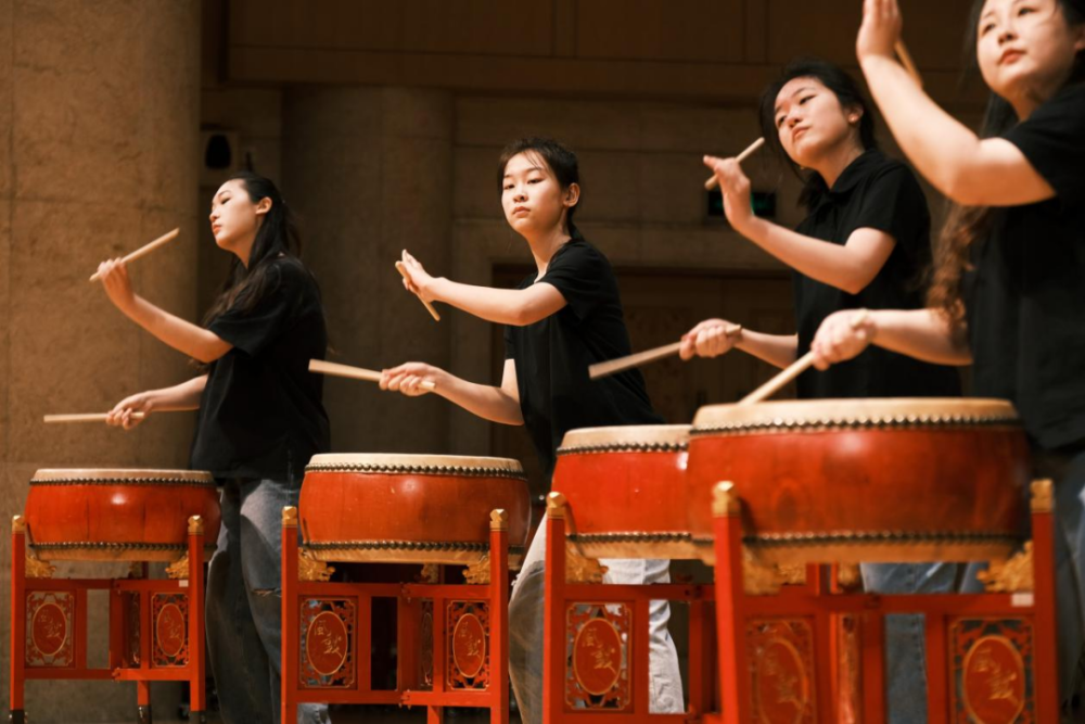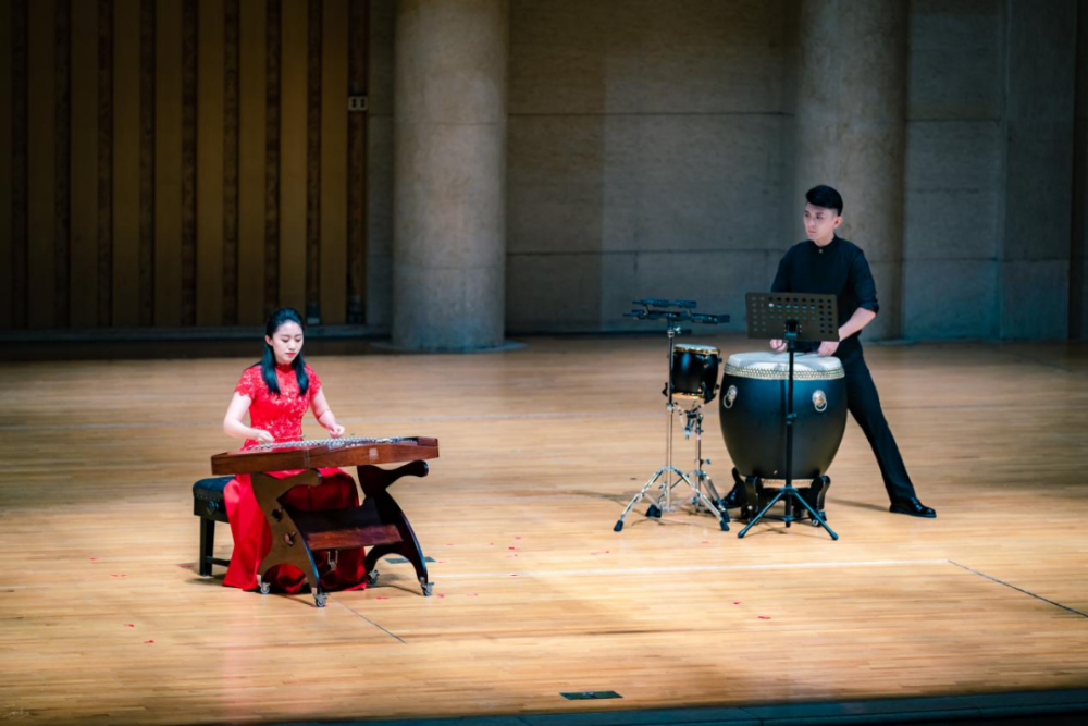 8月27日9:30,“鼓韵荟萃 金石之声——华夏击乐之旅音乐会”,魏然副教授与学生邹韵琪、曹恺中、刘子健同台演奏《锦鸡出山》,并特邀京胡演奏家易小龙带来作品《夜深沉》。学生张雨婷、龚宇、王梓硕、宗汐、李惜恩等也加入其中,带来节奏明快、富有激情的《牛斗虎》《滚核桃》《龙腾虎跃》。整场音乐会力求展现中国传统打击乐不同地域、风格鲜明的曲目,少数民族的特色打击乐形式以及近、当代创作作品。