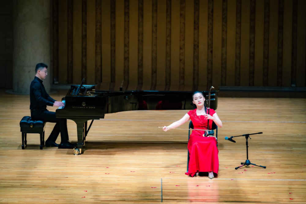 16:30,“南曲北调话心知——二胡·地域之风音乐会”,二胡演奏家严洁敏教授、扬琴演奏家刘音璇副教授通过《河南小曲》《洪湖人民的心愿》《草原新牧民》《葡萄熟了》《一枝花》《迷糊调》等作品,呈现南曲北调的地域特色音乐,展现出二胡丰富的表现力。严洁敏教授以纯粹精湛的演绎,从不同地域风格的作品中提炼二胡兼具民族性、现代性的音乐语言,奉献了一台二胡音乐盛宴。一气呵成、酣畅淋漓的演奏震撼全场,让听众大呼过瘾。
