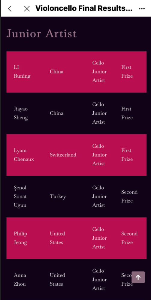 2020年塞尔维亚大提琴国际音乐比赛,大提琴II组第一名