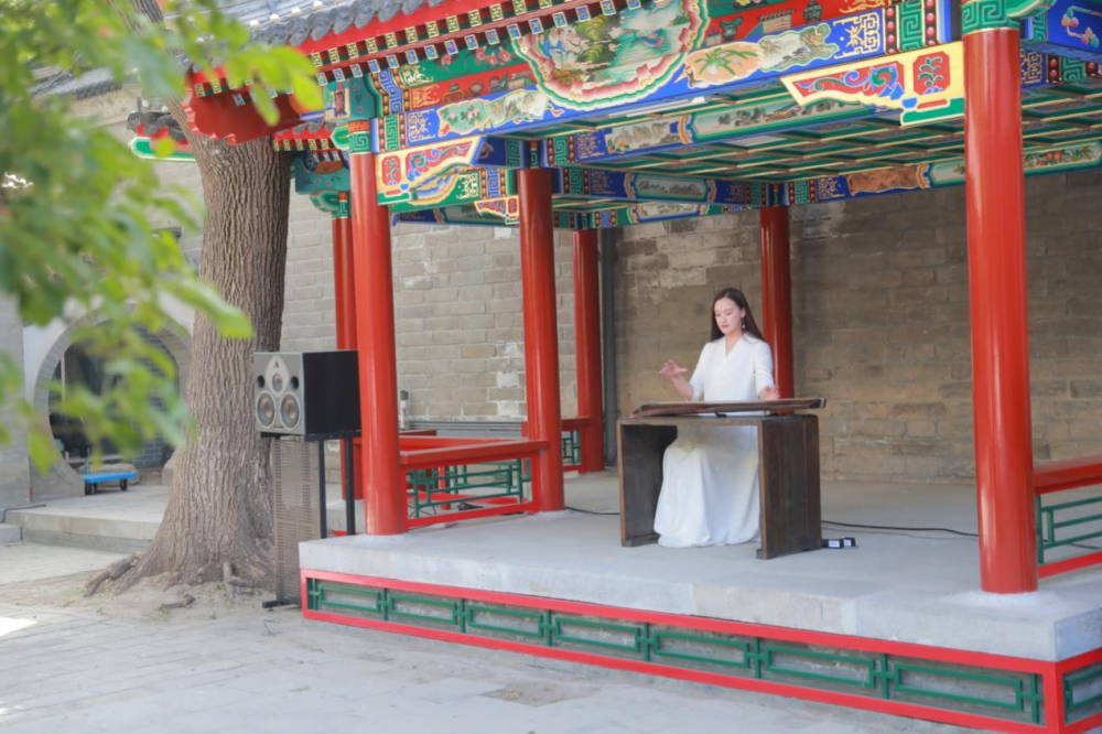 杭元祥书记一行在俞峰校长陪同下听取了乐器中心赵东升主任对唐琴“太古遗音”悠久历史的介绍,欣赏了由赵晓霞副教授用此琴演奏的古曲《流水》,在醇亲王府西小院独特的视听环境中感受古雅意韵和中国音乐文化的魅力。