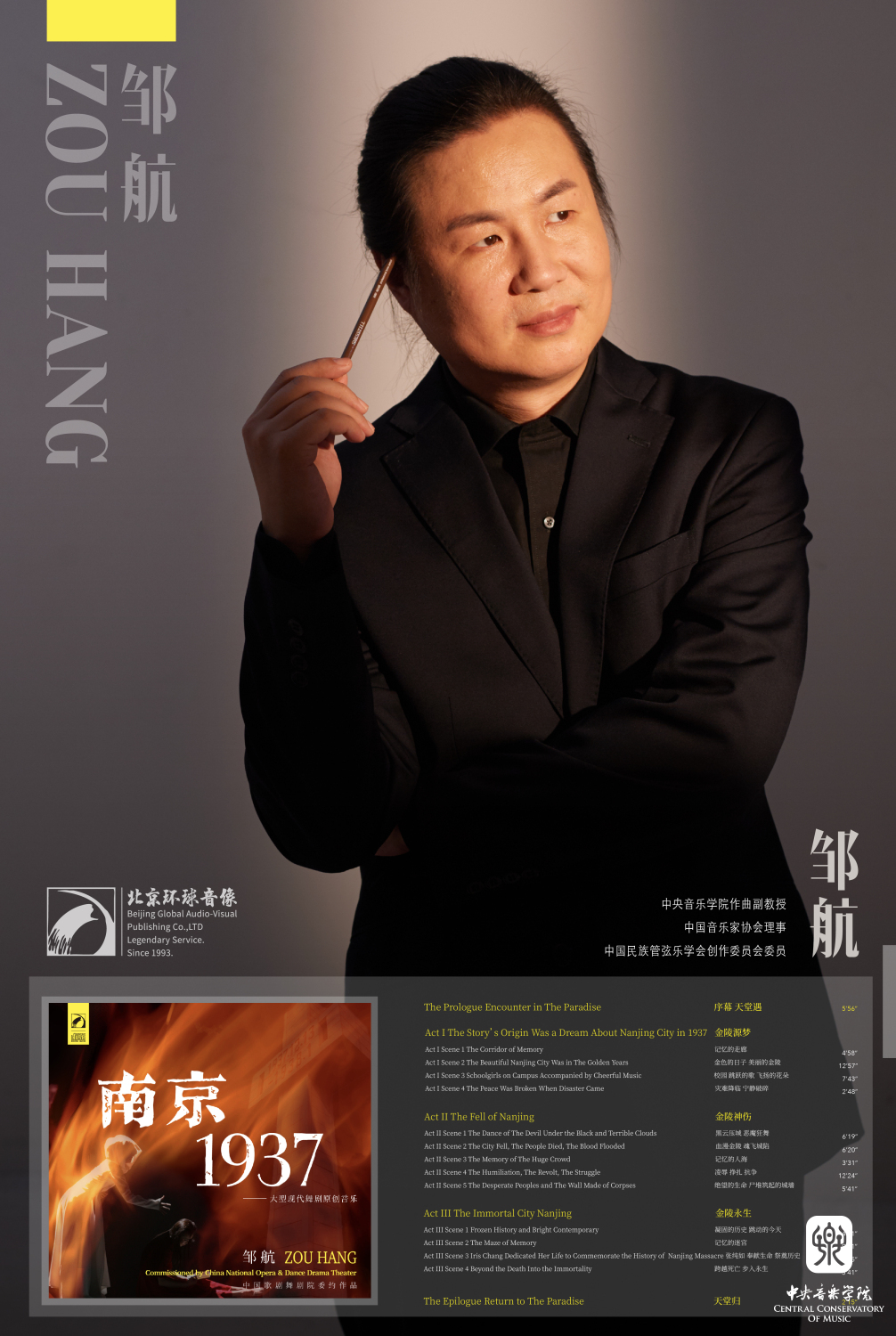 近日,开云官网作曲系副教授、作曲家邹航的作品《南京1937》,由北京环球音像出版有限公司出版发行。该作品曾获第五届中国舞蹈“荷花奖”舞剧类银奖、最佳作曲奖、最佳舞台美术奖和第十届中宣部“五个一工程”奖。