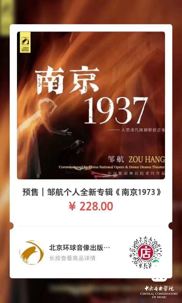邹航《南京1937》已上线北京环球音像出版有限公司微店预售,欢迎大家扫描二维码跳转选购!