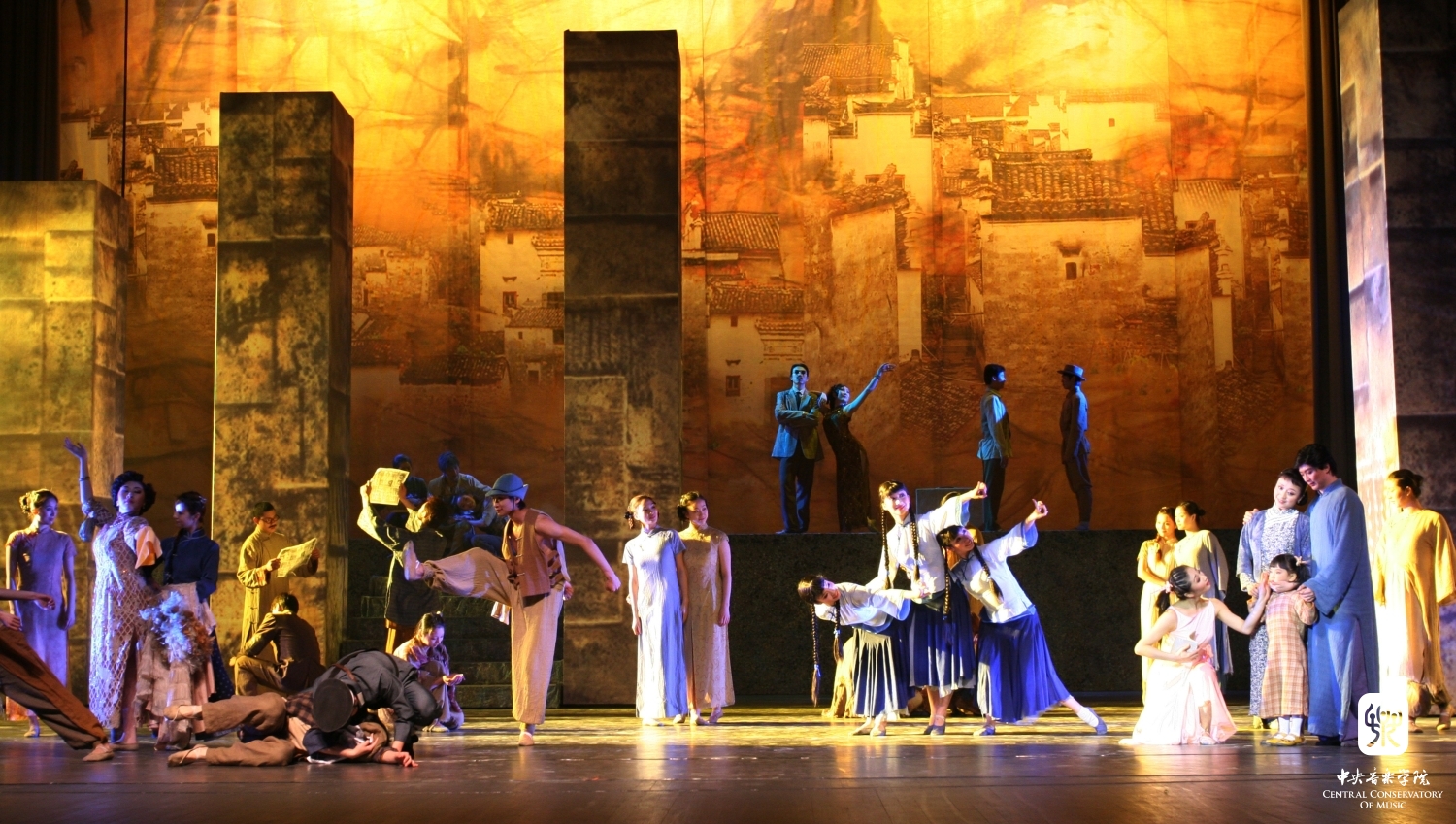 ZH:是的,听唱片的朋友们可以留意一下,当它变成小调以后,你会马上感觉到这是崩溃后的情绪,这是它所具有的关联性。在音乐的设计上,也有一些难点需要处理,比如侵略者的主题怎么写?这个主题需要让观众感受到日军武装力量的可怕和侵略者的邪恶残暴,泛调性和无调性的作曲技法给了我帮助,这种技术在音响上比较刺激,不协和。同时在侵略者进攻南京城这段音乐中,还大量运用了打击乐,以此来塑造军队的群体性。毕竟舞剧是一种抽象的表达,不能通过人数的堆砌来表示场面的宏大。
