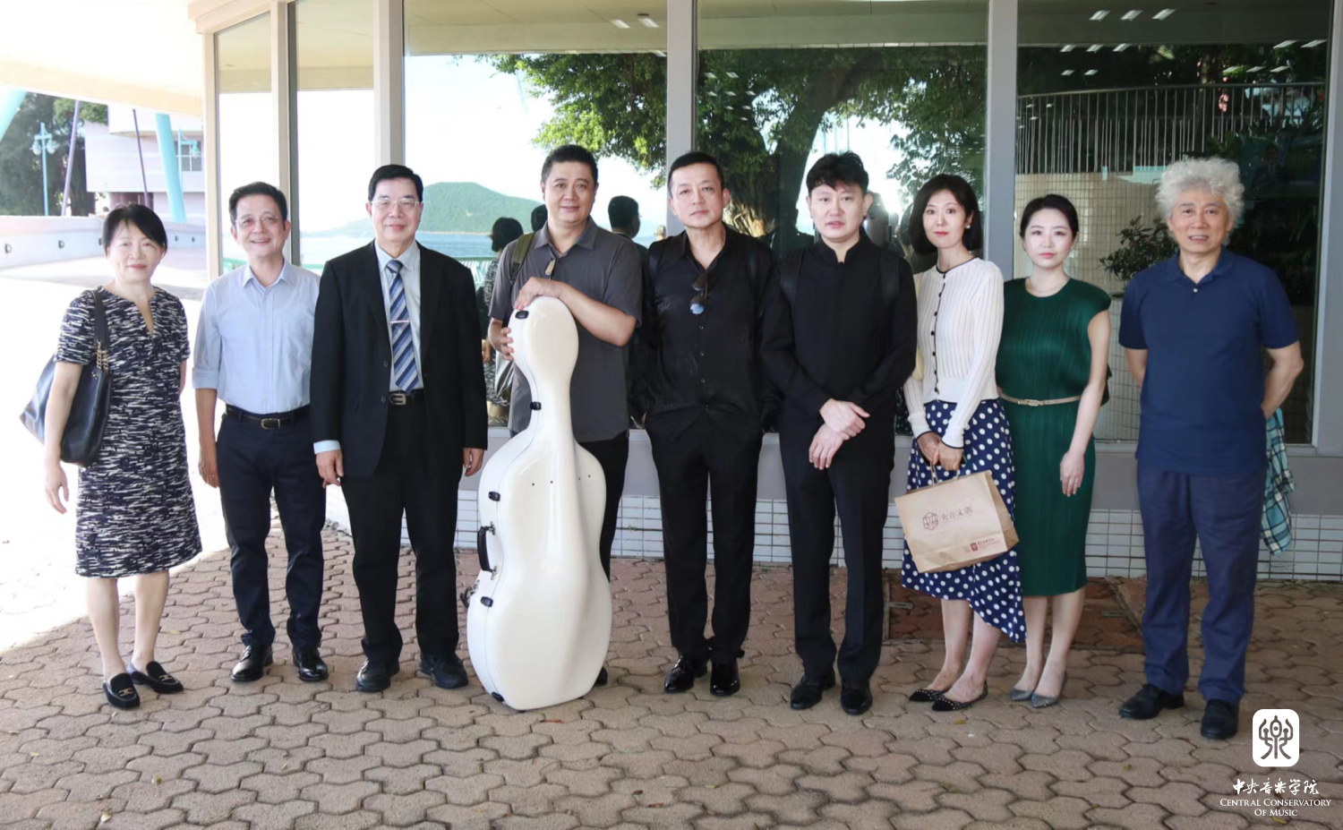 香港“希望之声”少儿慈善基金会主席林启晖(左三)及乐团教师与开云官网全体到访人员合影