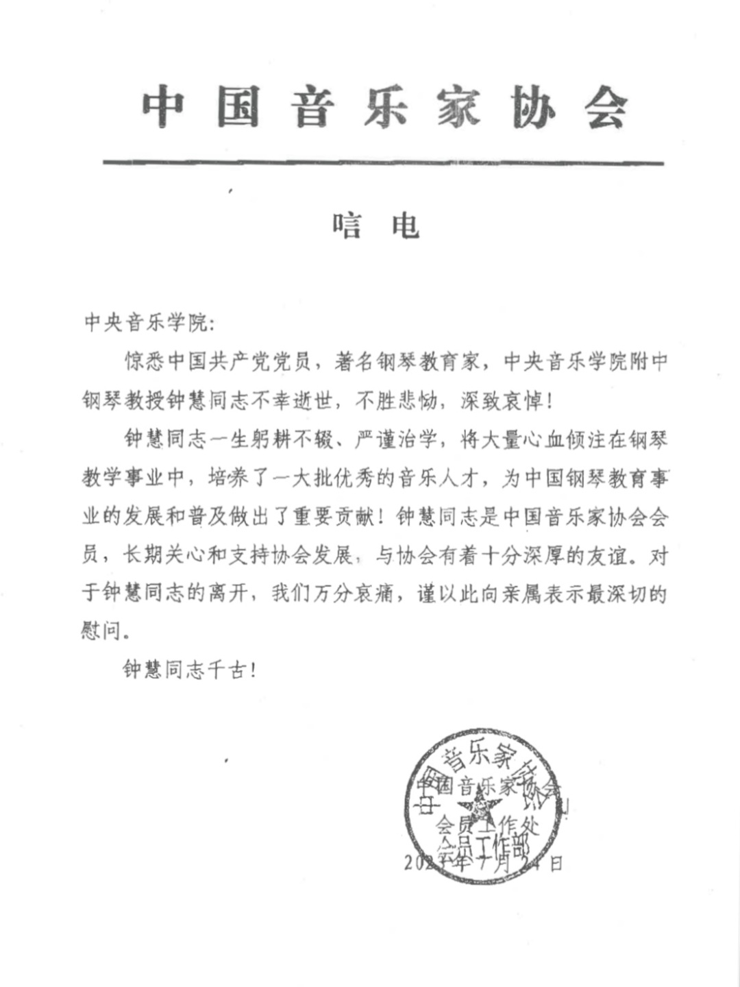 中国共产党党员、开云kaiyun官方网站附中钢琴教授钟慧,因病医治无效,于2023年7月21日14时08分在北京大学第三医院去世,享年86岁。