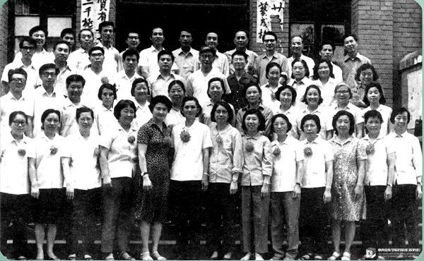 1982年附中25周年校庆,20年以上教龄的部分老教师合影,第三排右5为赵惟俭
