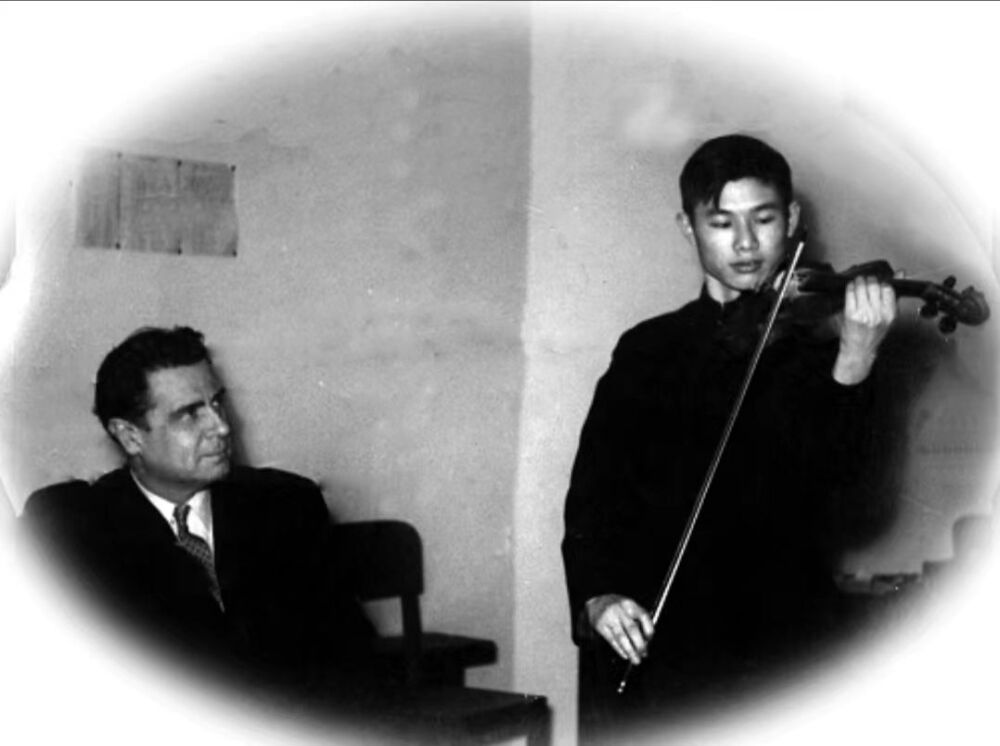 1954年夏天,我和另外11位其他专业的中国留学生一起抵达布加勒斯特。所有中国留学生首先要在巴洪大学文学系学习一年罗马尼亚语。而我的专业比较特殊,必须每天坚持练琴,于是通过大使馆的帮助,请布加勒斯特齐普里安·波隆贝斯库音乐学院的一位小提琴教授同时教我小提琴。这位老师教得非常认真、耐心,我当时的语言还不行,他便把自己的教学意图画在一个小本上,以帮助我更好理解。在这位老师的悉心教导下,我的琴艺有了快速进步,也正因如此,我后来才能够有幸成为该国公认的最优秀的小提琴教授之一阿瓦克杨的学生。阿瓦克杨教授的教学十分具有针对性,当他知道我将来主要从事教学工作后,为我增加了教学观摩和教学实践等环节。他不仅让我观摩其上课,还推荐我到音乐学院附中代课,使我在小提琴教学法方面获益匪浅。