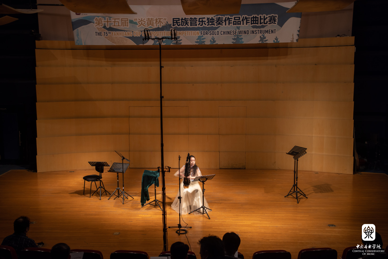 第十五届“炎黄杯”作曲比赛为民族管乐无伴奏的独奏作品。可选乐器为:竹笛(梆笛、曲笛、大 G 调低音笛)、笙(传统笙、键笙)、唢呐 (传统唢呐)、管子 (A调、G调、F调)。本届炎黄杯作曲比赛共征集近五十部作品,有十五部作品(一部管子独奏、三部唢呐独奏、五部竹笛独奏、六部笙独奏)入围决赛,以上作品体现出学生新颖的创作思路与丰富的音乐语汇。