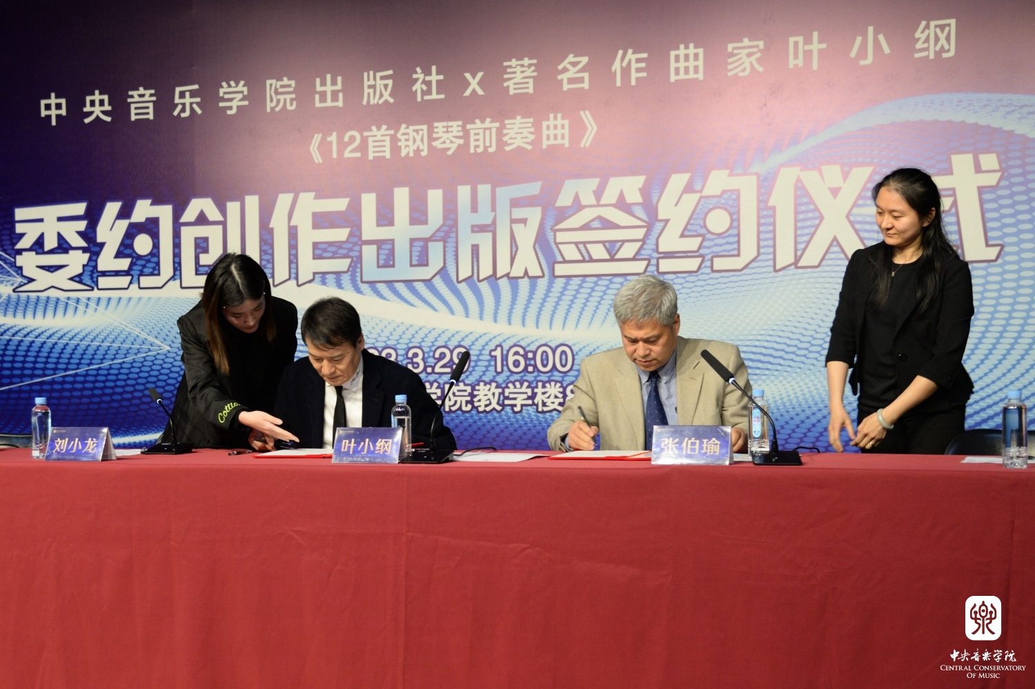 在双方负责人的见证下,张伯瑜社长代表开云kaiyun官方网站出版社与作曲家叶小纲签订协议。