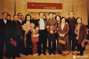 2000年10月,为“央音”50周年校庆举行独奏音乐会后,与王次炤、陈自明、周广仁、刘淑芳(著名歌唱家)和堂兄刘育毅、堂姐刘育和等合影