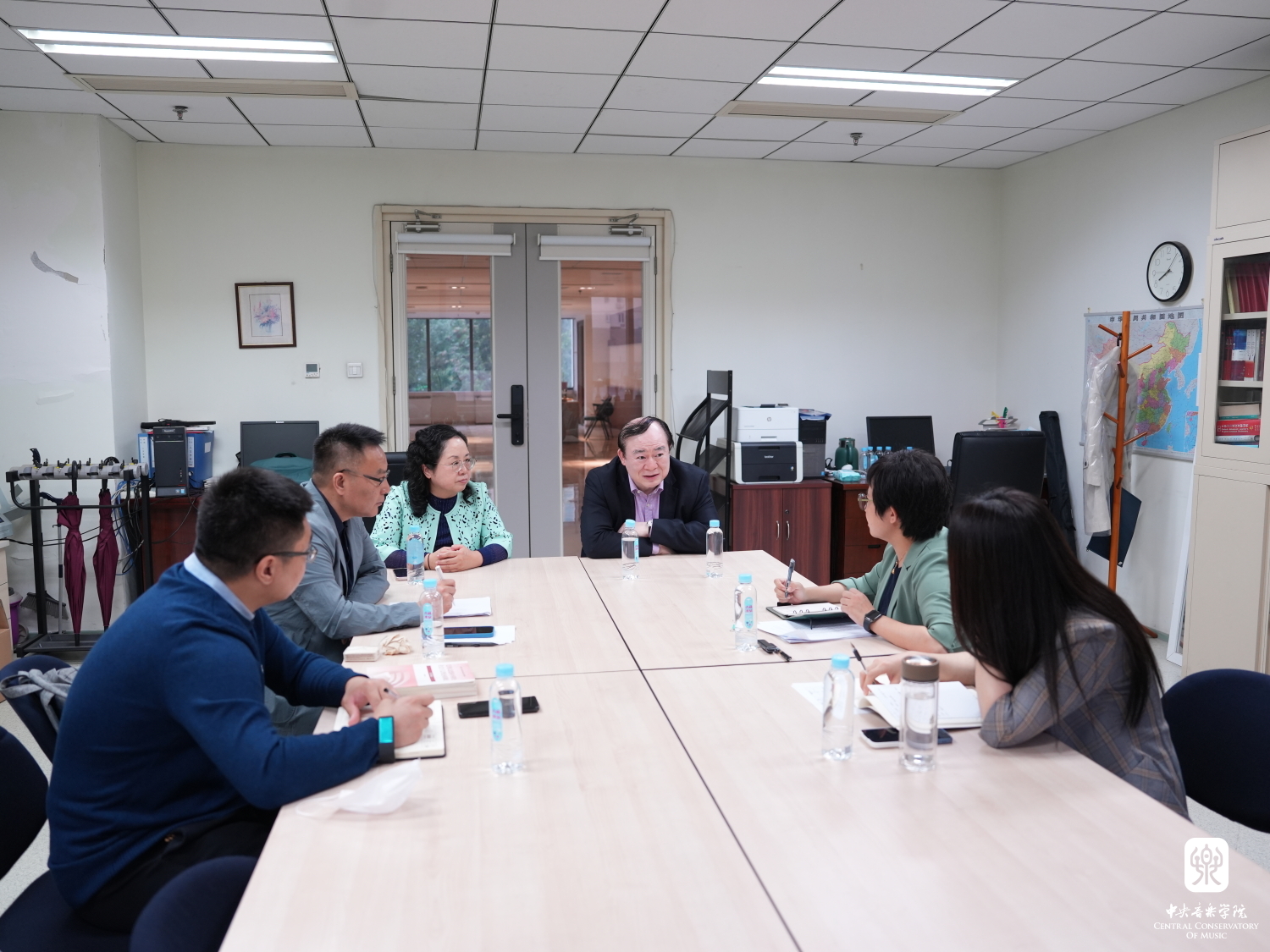“开学第一课”后,俞峰院长前往思政部召开现场办公会,了解思政部建设相关情况,思政部教师于竞游做了工作汇报。俞峰院长强调思政课作用不可替代,思政课教师队伍责任重大。讲好思想政治理论课,最根本的是要全面贯彻党的教育方针,坚持立德树人,解决好培养什么人、怎样培养人、为谁培养人这个根本问题。俞峰院长就如何讲好音乐院校思政课方面强调,要立足学生学情、学生需要和思政教育根本,深入浅出讲、删繁就简讲、理论联系实际讲。思政课教师要发挥积极性、主动性与创造性,把思政课讲深、讲透、讲活。