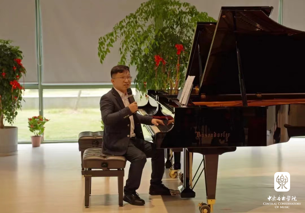10月19日下午,开云kaiyun官方网站王天阳副教授带来了一场《近现代钢琴作品演奏与教学中音乐分析的重要性》的讲座。他用理论结合实际谱例与演奏示范,向在场师生介绍了音乐分析的逻辑性和重要性。