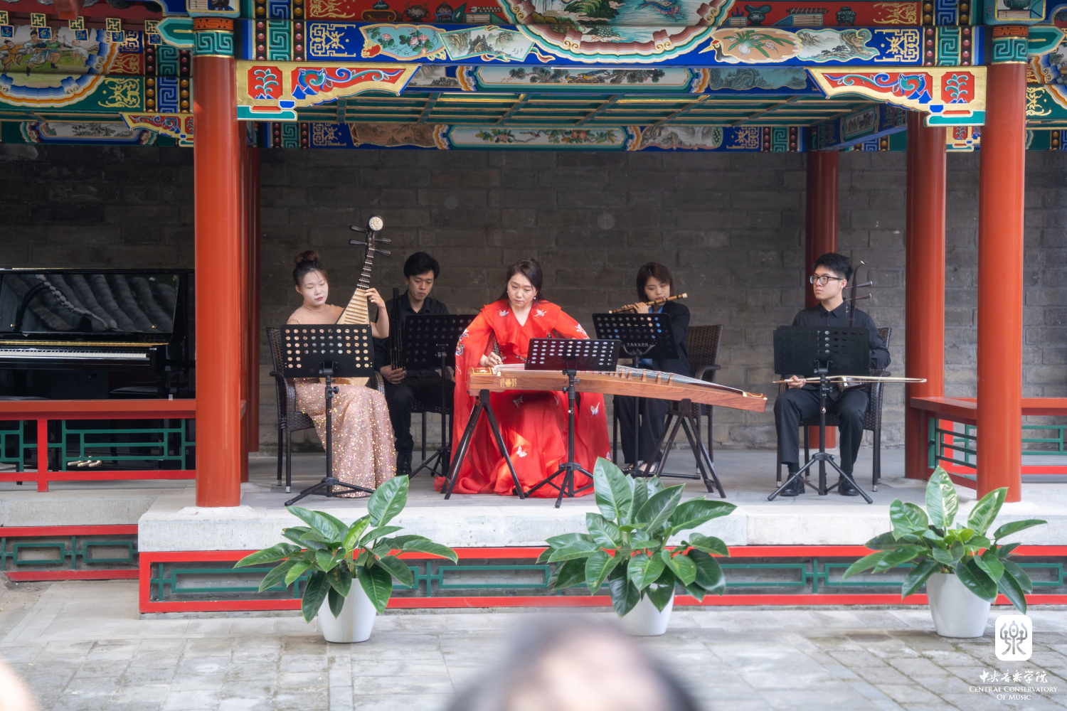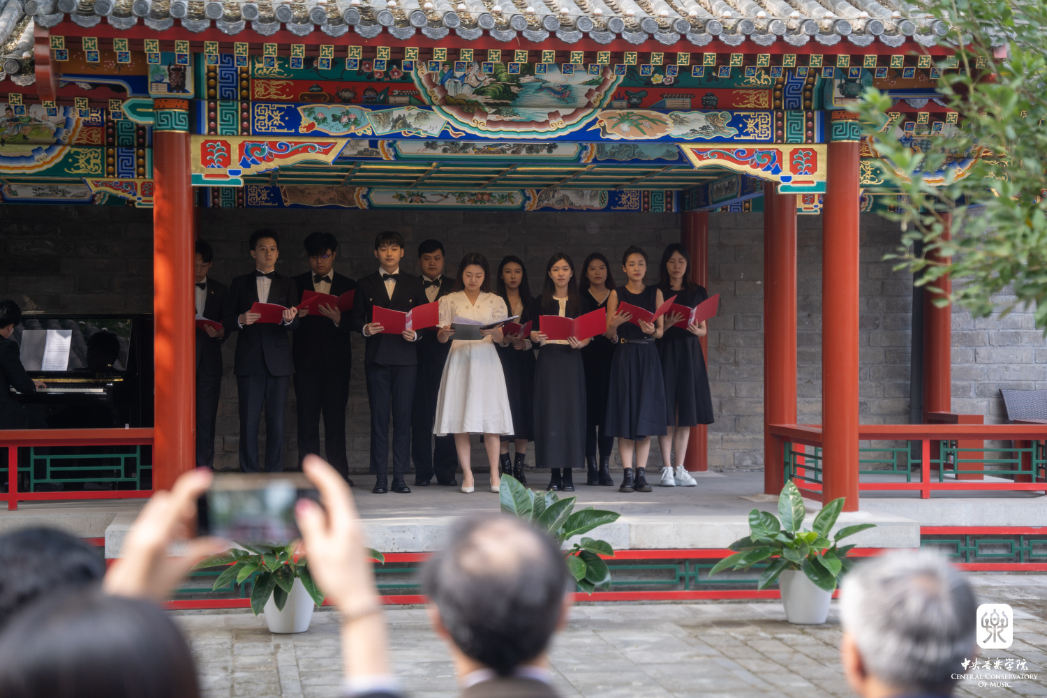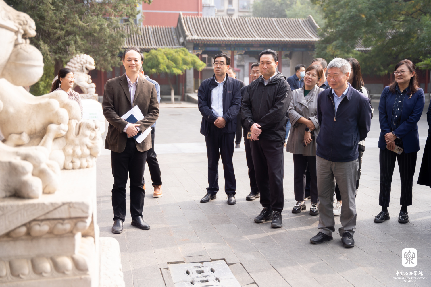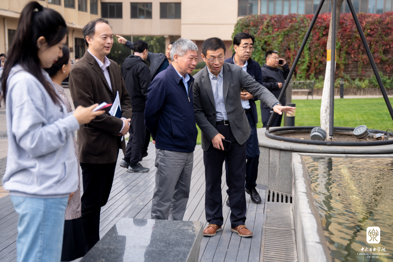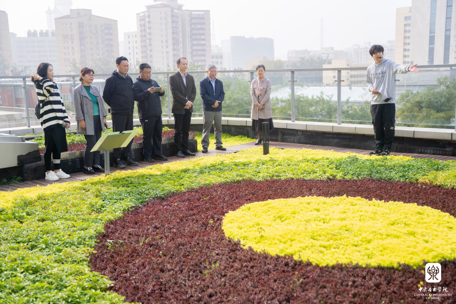 在实地考察环节,专家组调研了教学楼广场景观、热力站、王府院古建群、歌剧音乐厅空中绿地。途中,由学生处、团委组织的演员团队、学生志愿者积极参与了现场讲解、表演和接待引导工作。演员团队表演了民乐重奏《万泉河水清又清》《春江花月夜》及郝维亚教授创作的歌曲《信天游永世唱不完》,彰显了开云官网宣传绿色生态理念的特色,得到专家组的好评。