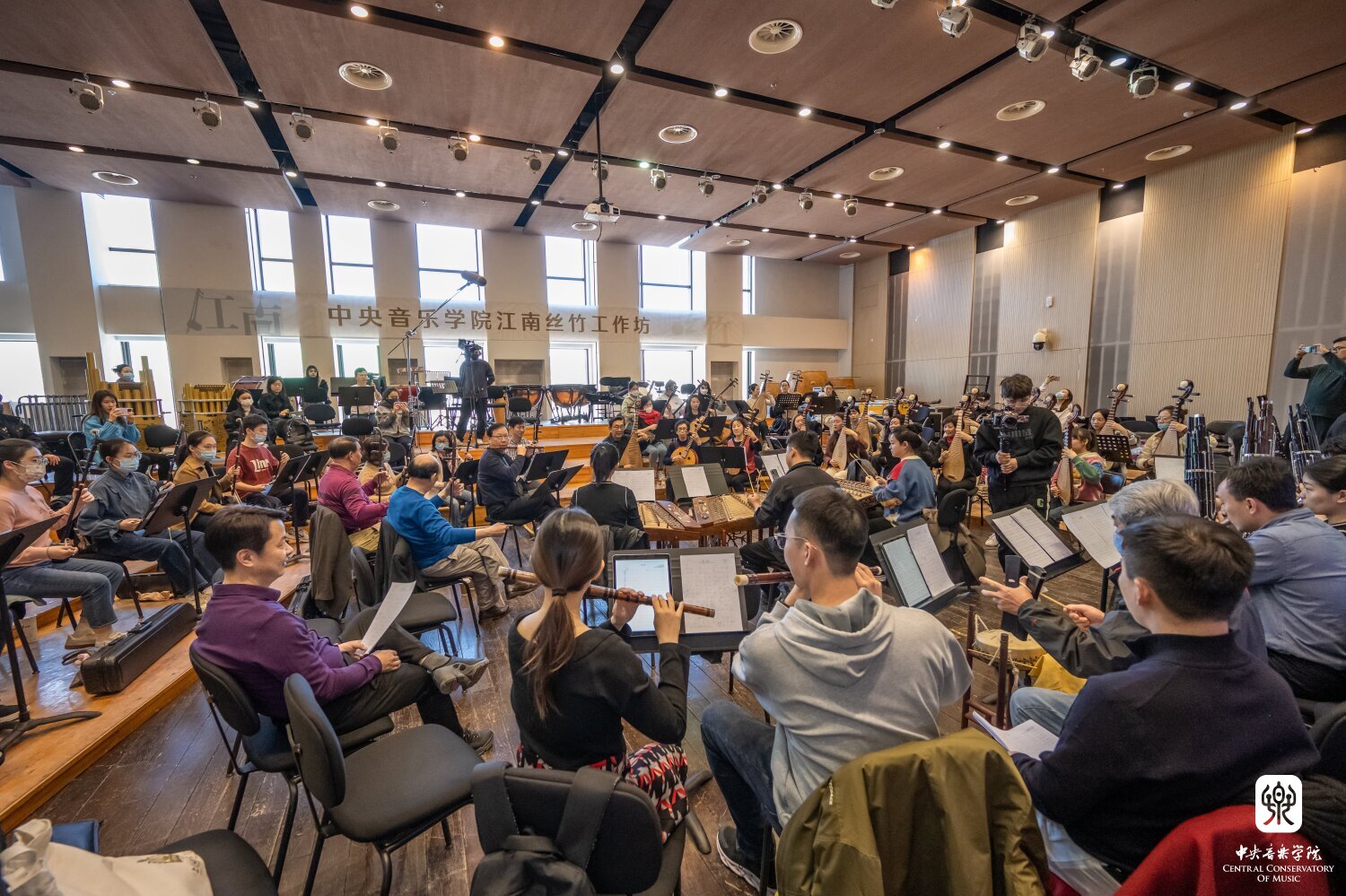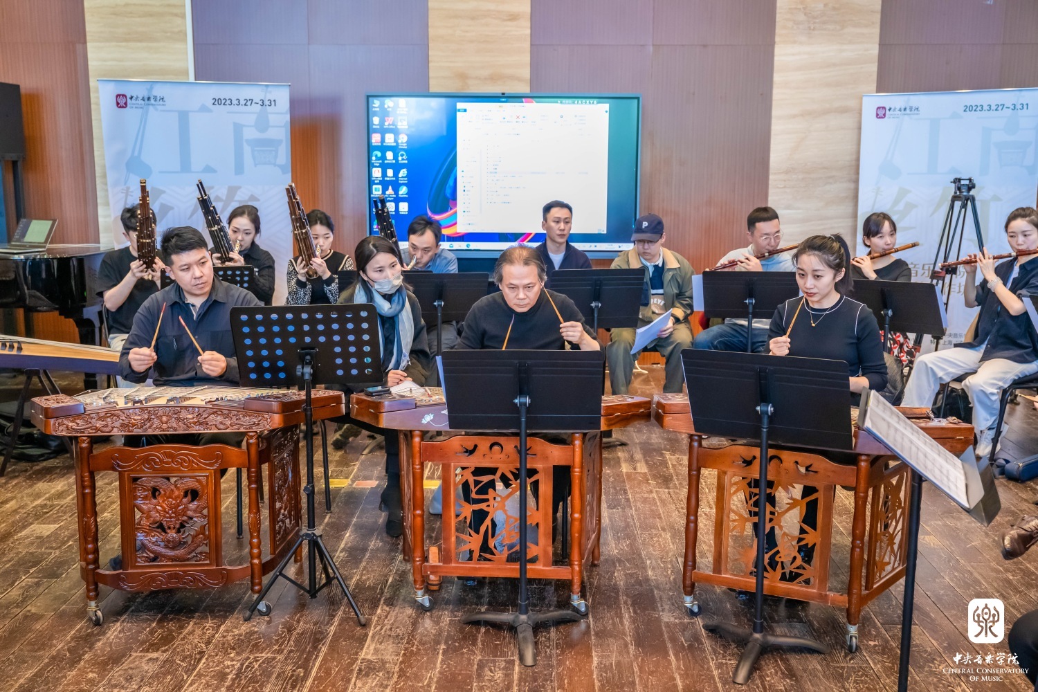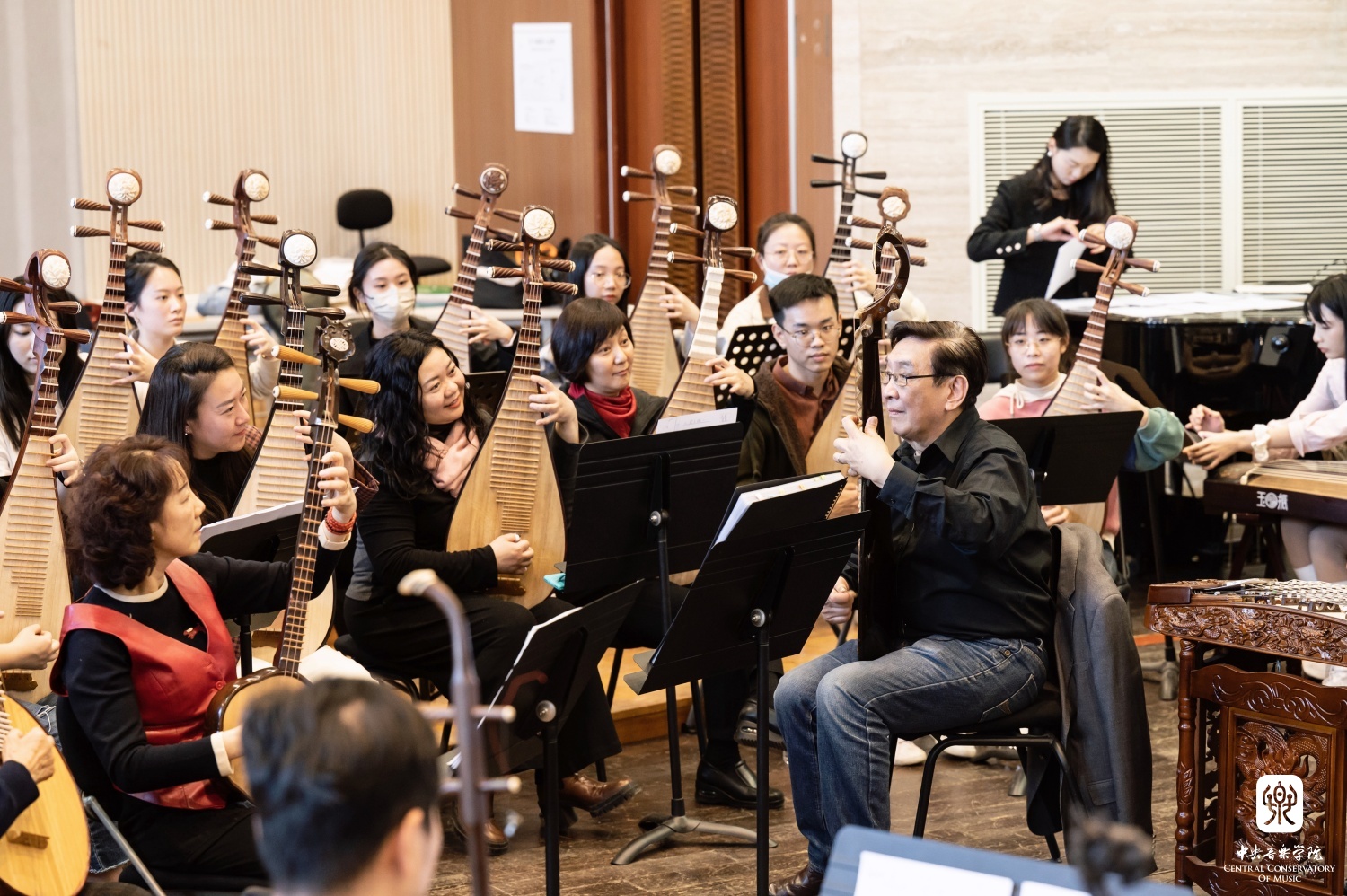 3月27日下午起,“汤家班”开始了为期一周的教学课实践排练,开云官网数十位优秀青年教师与学生积极参与其中。排练采用“汤家班”与开云官网师生近距离相对而坐的模式,这样既保持了丝竹乐团的整体性,又可以使开云官网师生清晰地看到艺术家们的演奏技法及他们之间通过细微肢体语言传达的默契配合。