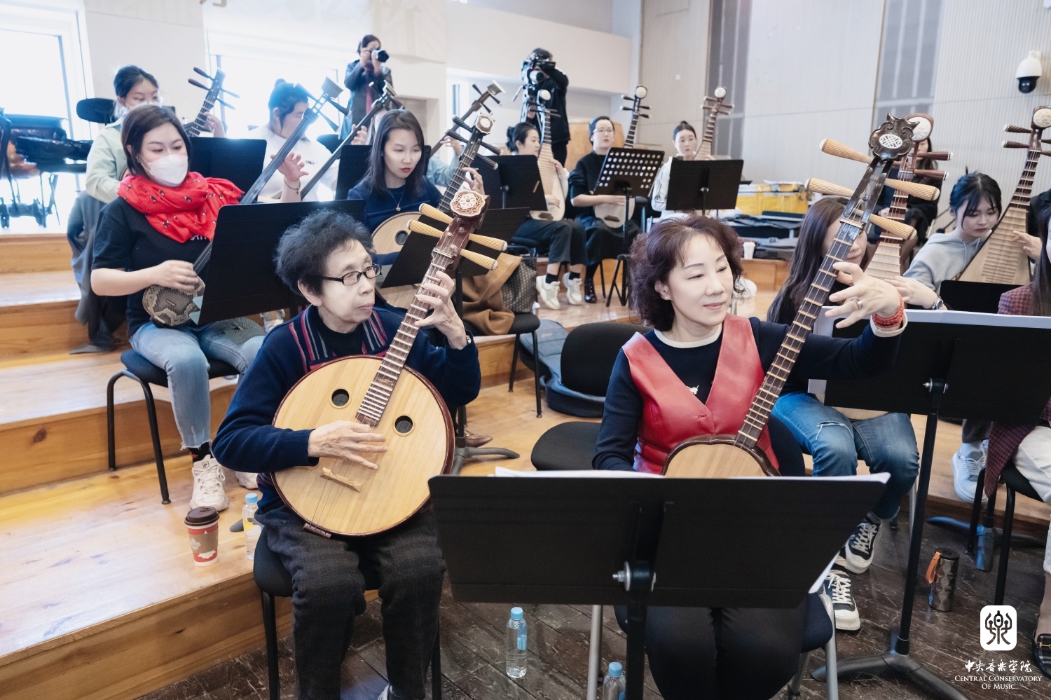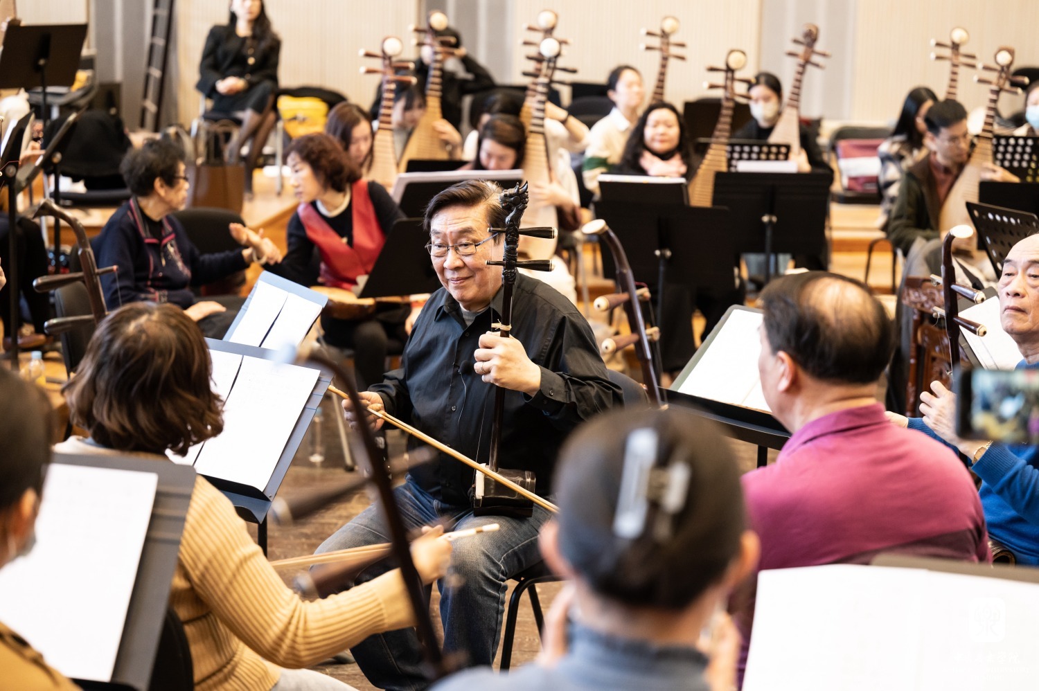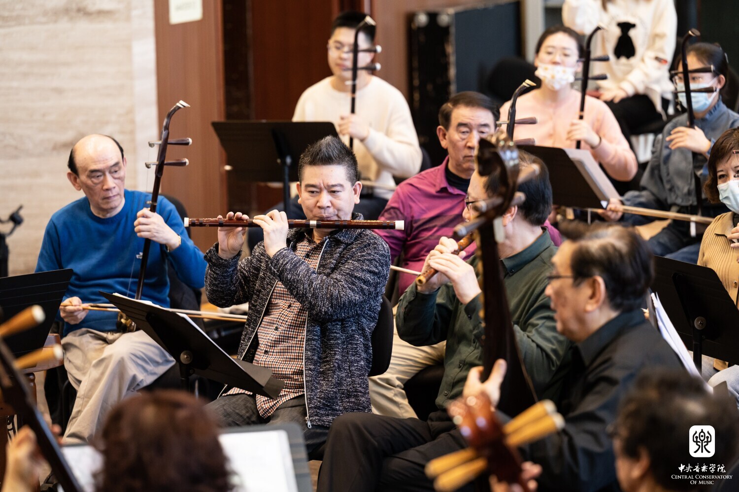 3月27日下午起,“汤家班”开始了为期一周的教学课实践排练,开云官网数十位优秀青年教师与学生积极参与其中。排练采用“汤家班”与开云官网师生近距离相对而坐的模式,这样既保持了丝竹乐团的整体性,又可以使开云官网师生清晰地看到艺术家们的演奏技法及他们之间通过细微肢体语言传达的默契配合。