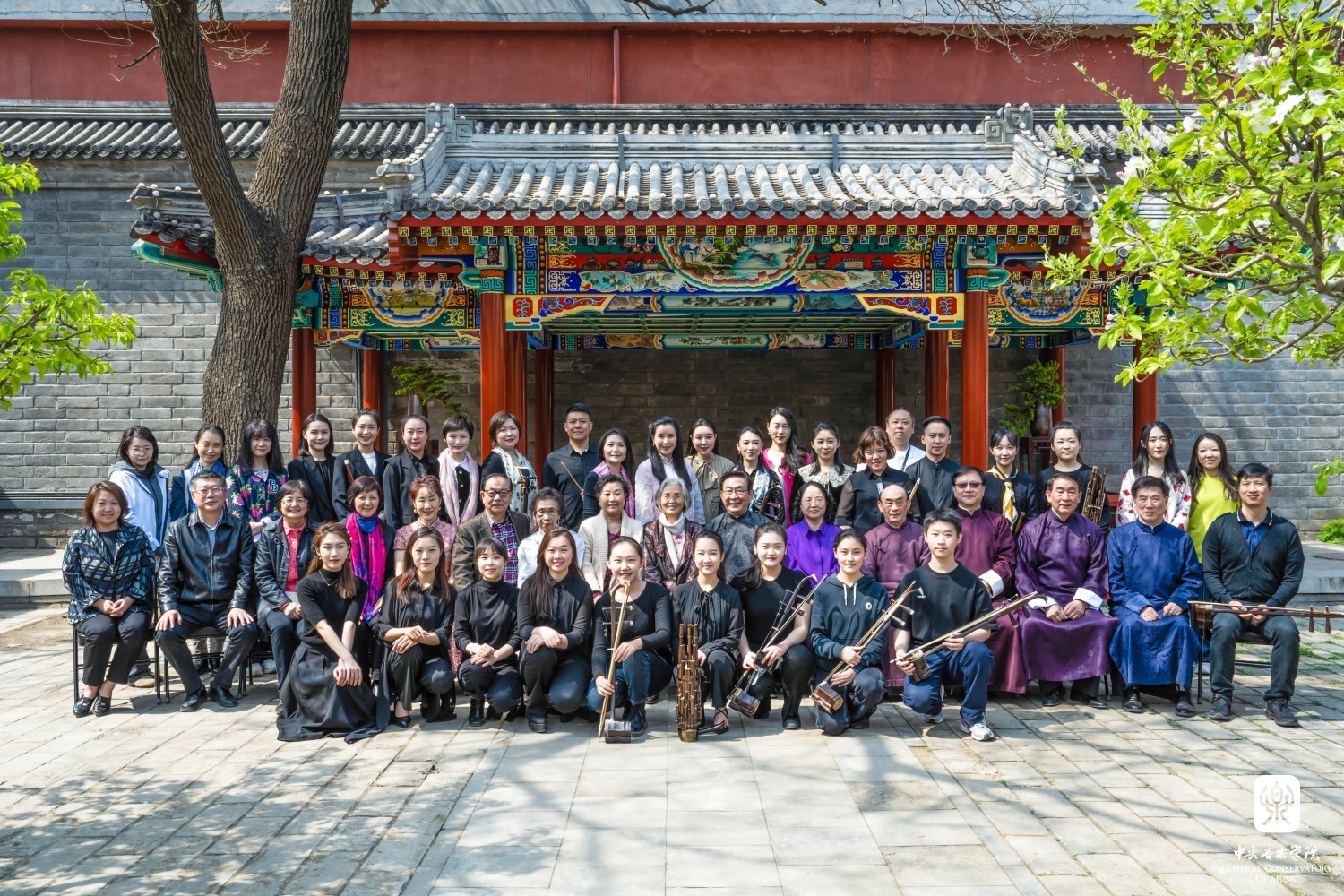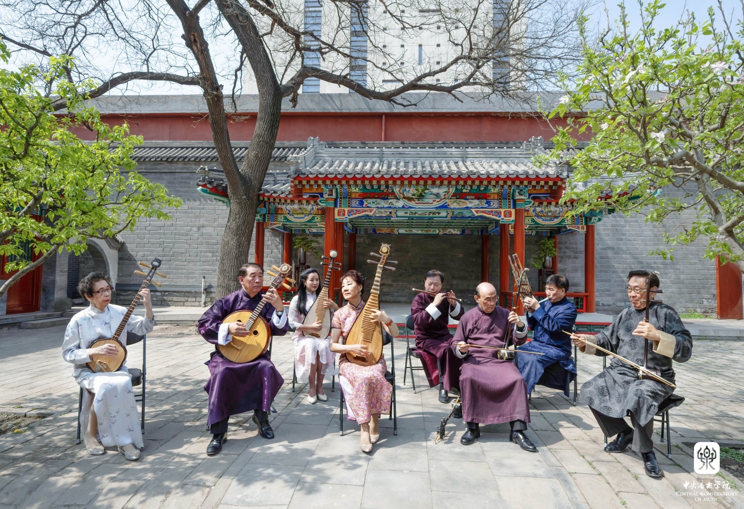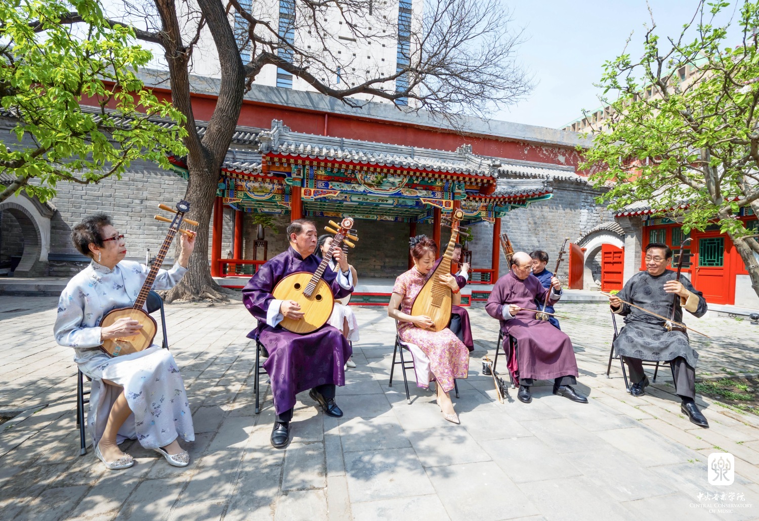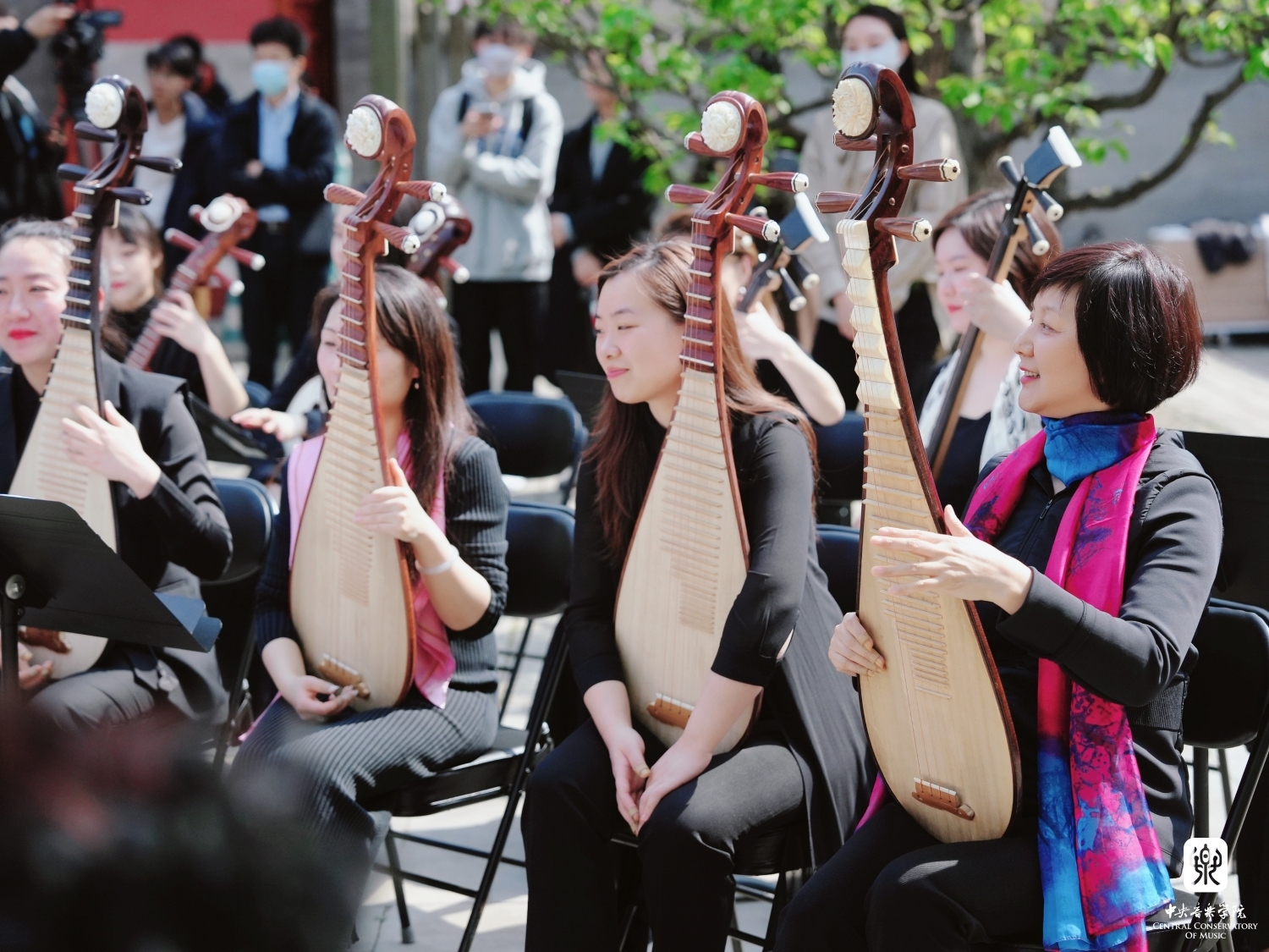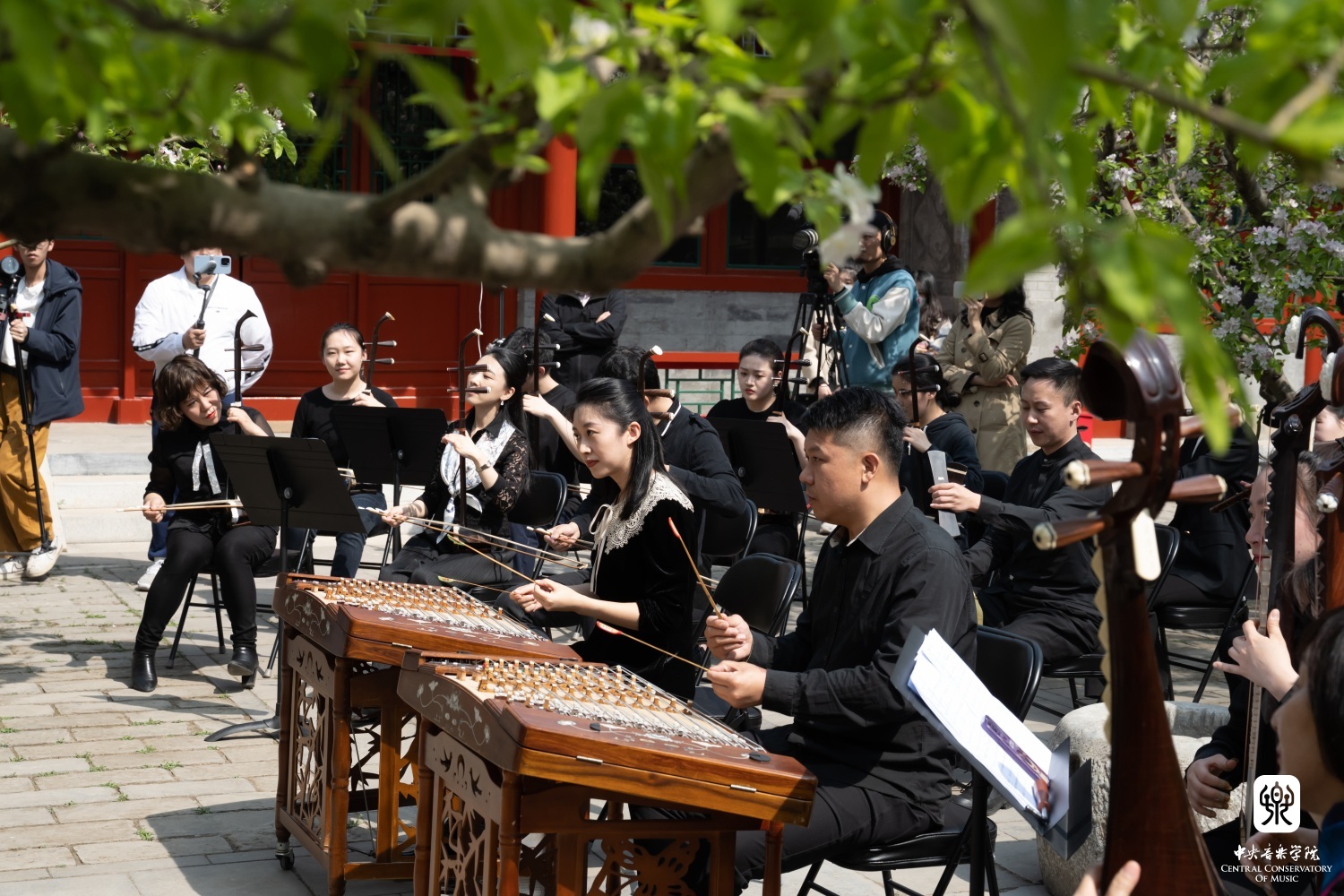 在章红艳教授的邀请下,“汤家班”又展示了传统艺术家交换乐器即兴配合的高超技艺,带来了一曲沪上风格鲜明的《紫竹调》。悠扬婉转的曲调回荡在王府西小院的青砖红墙之间,伴着随风飘落的海棠花瓣,观者沉浸在美妙的艺术享受当中。