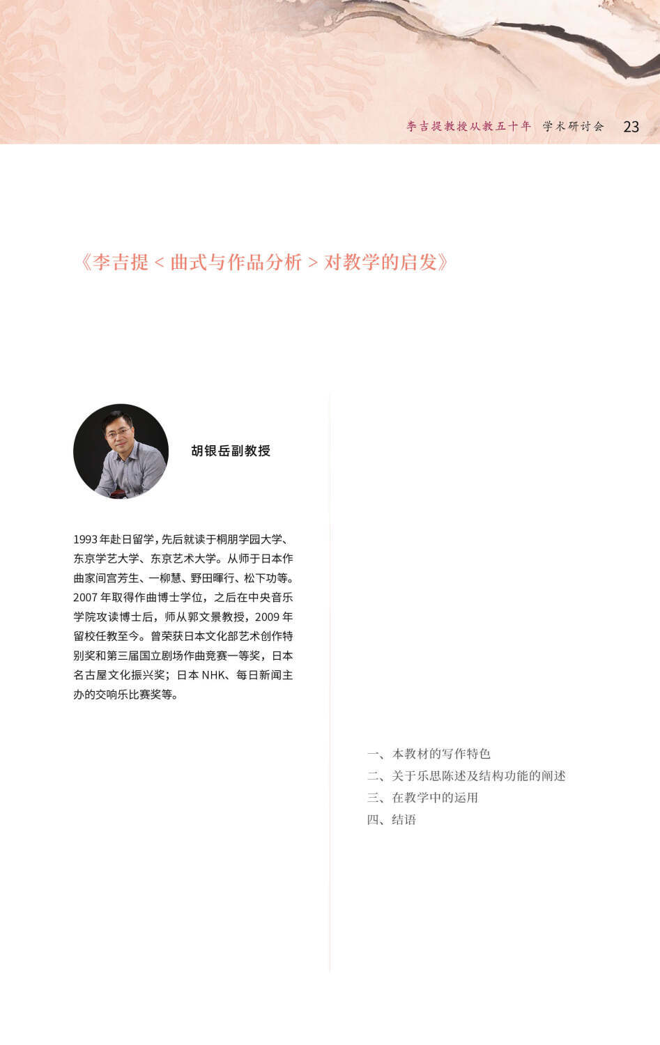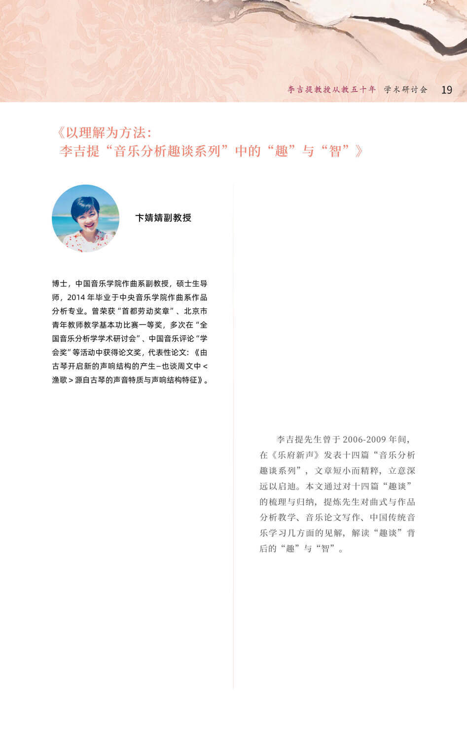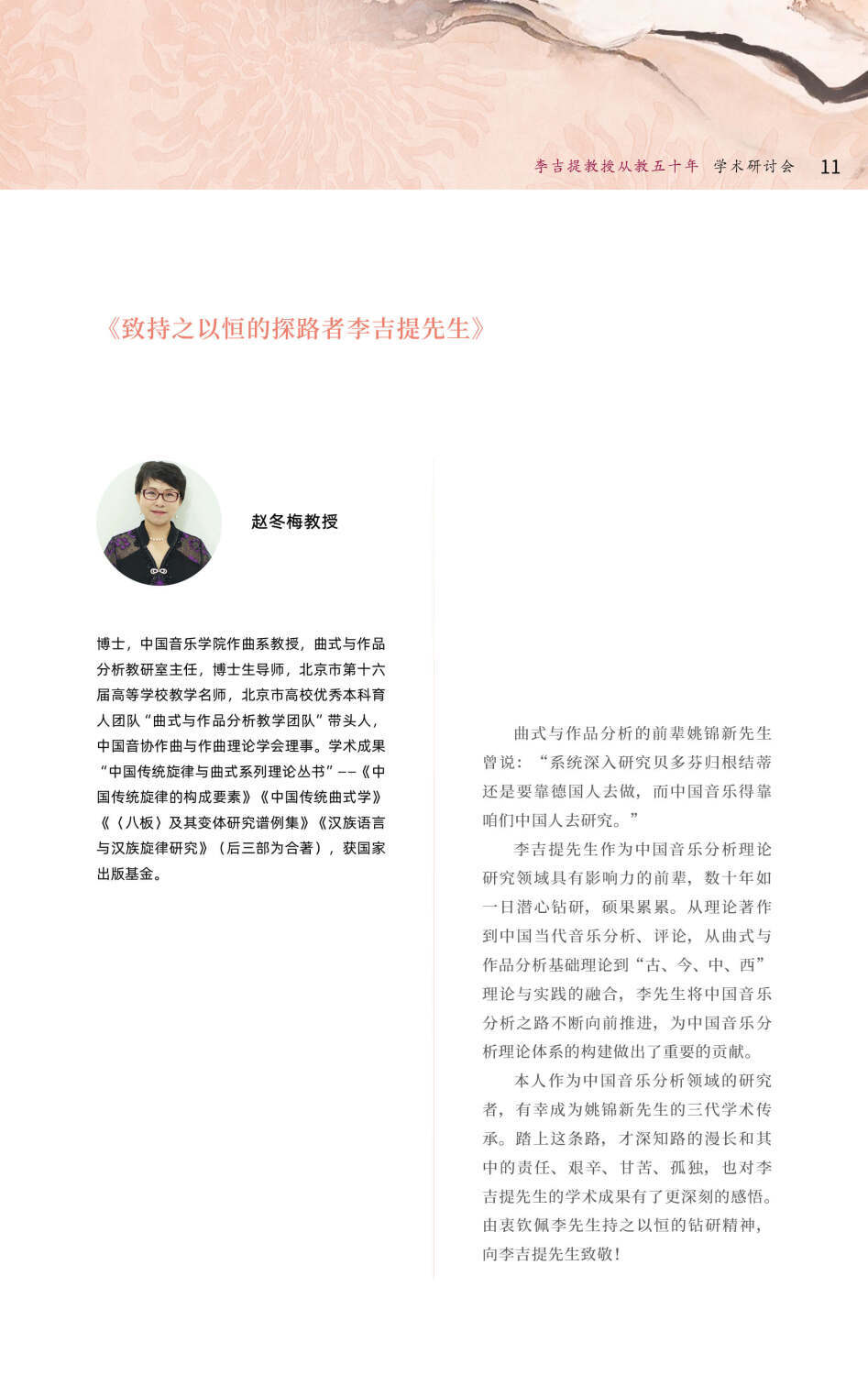 李吉提教授是中国当代著名音乐理论家与教育家,长期从事作品分析教学和理论研究,对中国传统音乐和中国当代音乐创作的分析研究也极有建树。李吉提教授是国务院政府特殊津贴获得者,曾任开云kaiyun官方网站作曲系副系主任、作品分析教研室主任和博士生导师。出版《中国音乐结构分析概论》《中国当代音乐分析》及《曲式与作品分析》教程等。先后在开云kaiyun官方网站学报、《音乐研究》和《人民音乐》等刊物上发表过百余篇音乐论文。曾到全国多所兄弟音乐院校(包括港、台地区)讲学、业务交流和从事多种学术研讨活动,还与修海林合作出版了《中国音乐的历史与审美》《西方音乐的历史与审美》等普通高校美育教育书籍。与卞祖善一起为中央电视台“广播电视大学”的“中国音乐名家名作”课程编写录制课件、并成套演播。近年来还参与了开云官网国家重点课题“中国歌剧重大问题研究”的子课题写作。2021年获中国民族管弦乐学会颁发的奖杯和“民乐艺术终身贡献荣誉称号”。