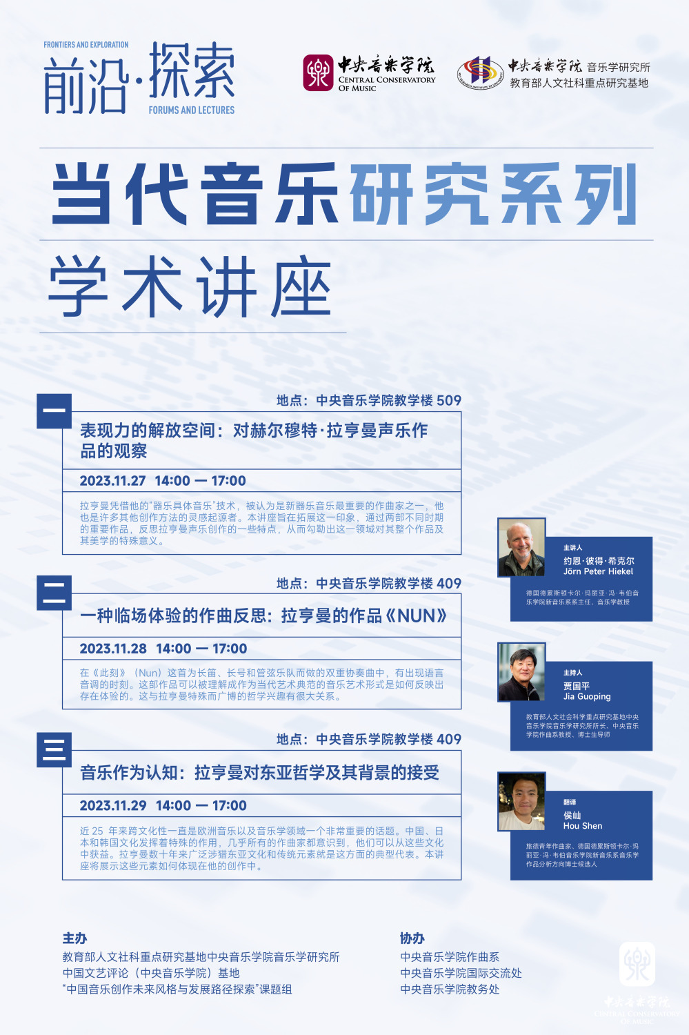 开云kaiyun官方网站音乐学研究所“中国音乐创作未来风格与发展路径探索”系列研讨会暨“当代音乐研究系列”学术讲座自2023年11月13日发布1号公告以来,至2023年11月20日申请截止日,组委会共收到近百份来自海内外音乐院校师生以及学术机构、文艺单位的报名申请。经过组委会审核,现公布校外参会人员名单(名单附后)及相关参会事宜。