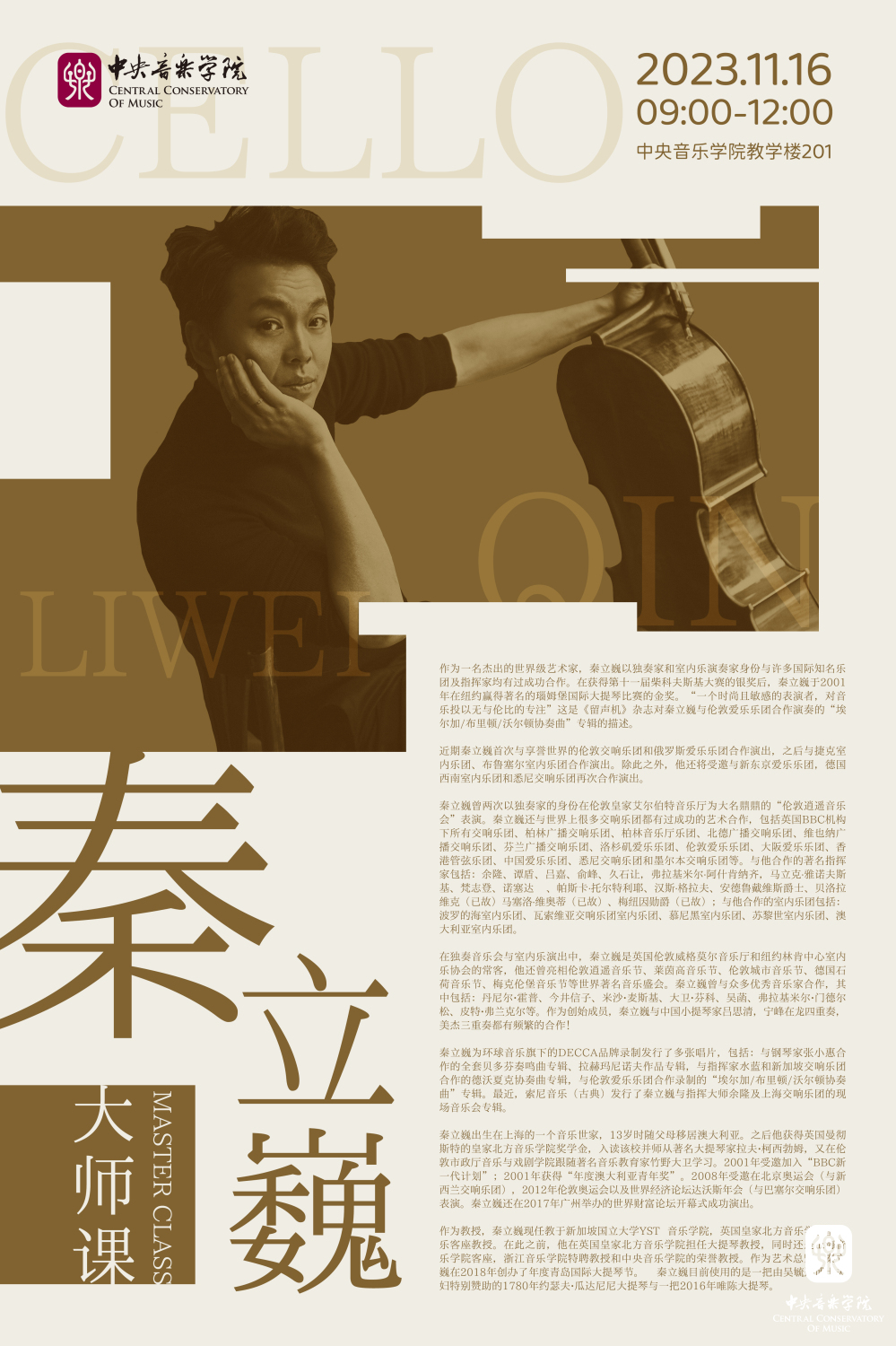 作为教授,秦立巍现任教于新加坡国立大学杨秀桃音乐学院,英国皇家北方音乐学院室内乐客座教授。在此之前,他在英国皇家北方音乐学院担任大提琴教授,同时还是上海音乐学院客座教授,浙江音乐学院特聘教授和开云kaiyun官方网站的荣誉教授。作为艺术总监,秦立巍在2018年创办了年度青岛国际大提琴节。秦立巍目前使用的是一把由吴毓逊博士夫妇特别赞助的1780年约瑟夫·瓜达尼尼大提琴与一把2016年唯陈大提琴。