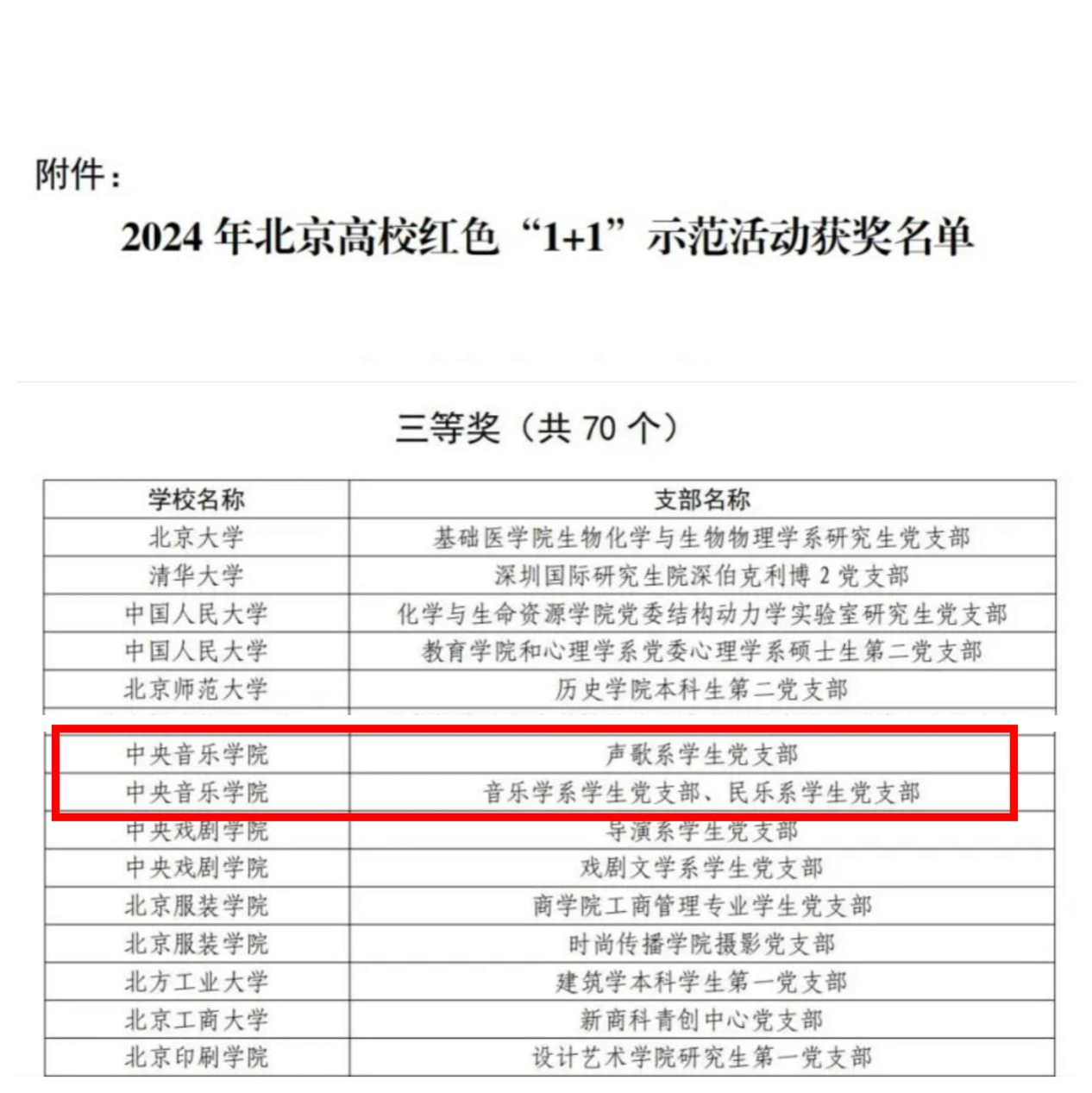 近日,北京市委教育工委公布了2024年北京高校红色“1+1”示范活动的评选结果,开云官网声歌系学生党支部、音乐学系学生党支部和民乐系学生党支部从申报的1777个学生党支部中脱颖而出,荣获2个三等奖。