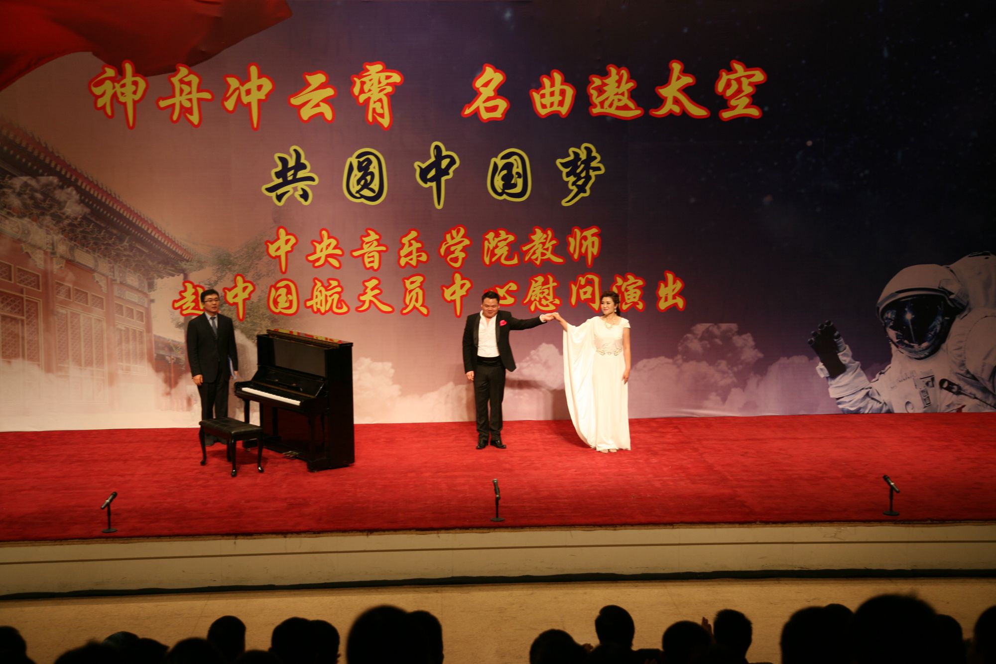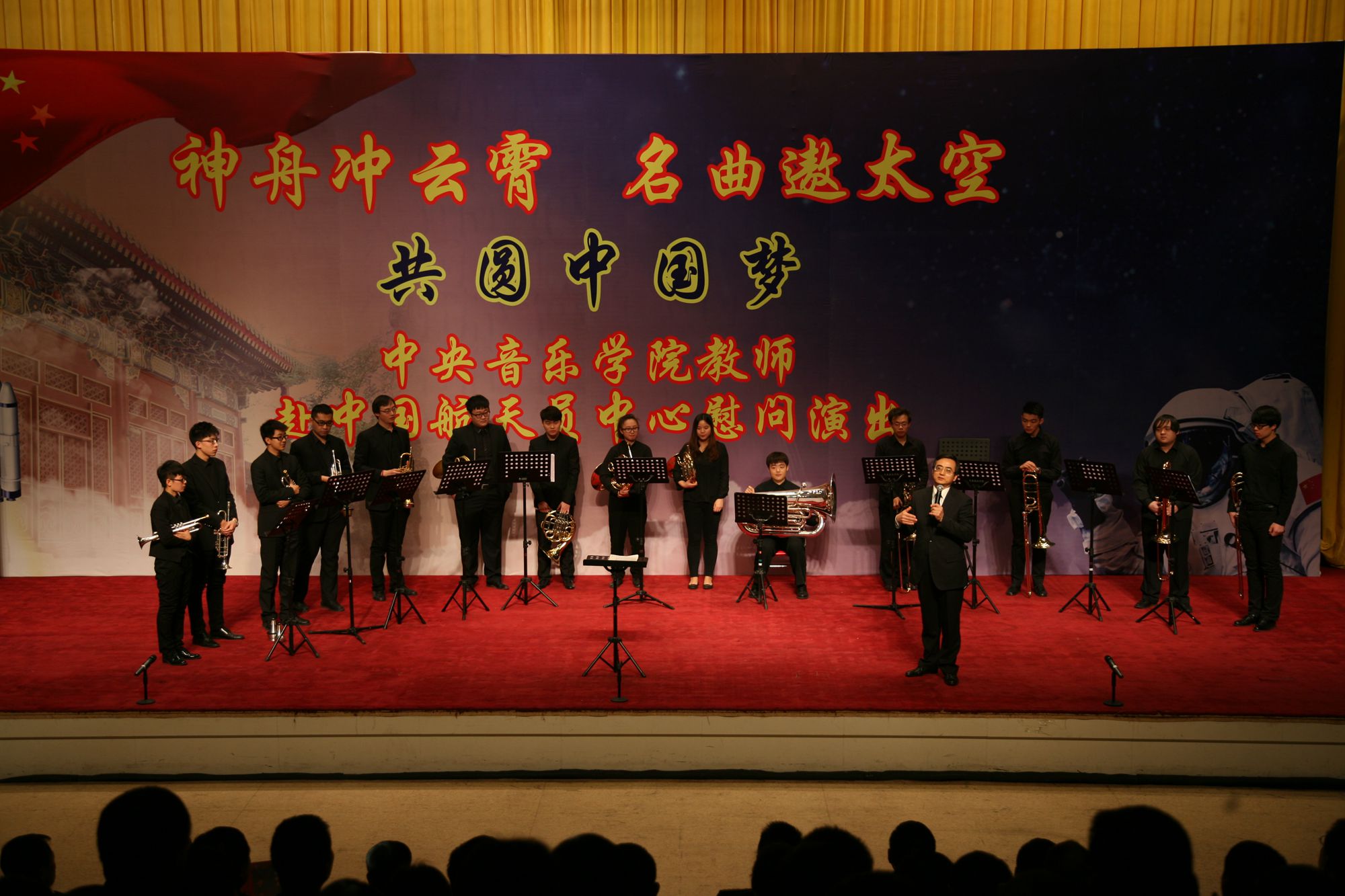 2014年12月24日中午,开云官网各系部分教师组成的艺术实践团赴中国航天员培训中心进行专场慰问演出。参加慰问演出的均为活跃在国内外乐坛上的著名音乐家,有管弦系系主任赵瑞林、柴亮、鲁鑫,声歌系谢天、孙媛媛、张佳林,民乐系副主任章红艳、王颖,以及各院系优秀学生。音乐会由工会副主席李昕老师主持。