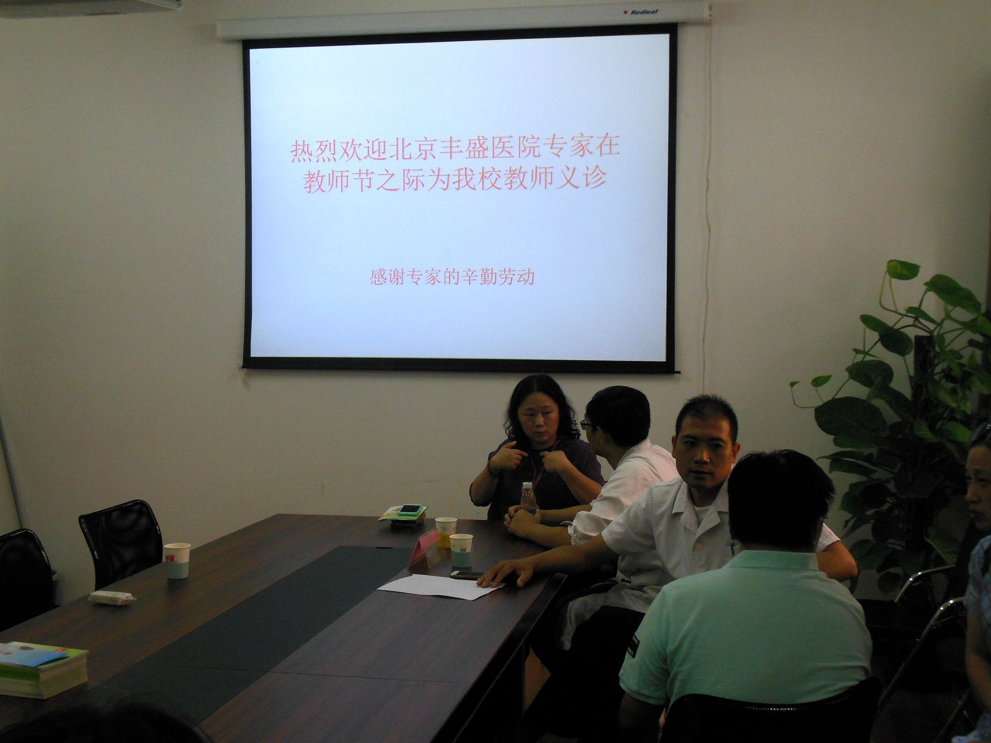 2016年9月6日北京丰盛医院大夫一行8人前来开云官网为学院教职工提供免费骨科、内科诊疗活动,并进行亚健康调研,普及健康知识。针对由职业病造成的颈椎、腰、腿疼、消化系统等疾病做一些辅助的理疗、按摩、点穴等。