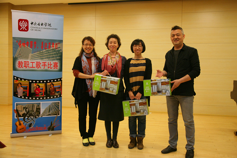 最后,图书馆谷越老师以一首经典的意大利歌曲《我的太阳》打动了评委、征服了观众,摘取了本次比赛的桂冠。管弦系辅导员陈海平老师演唱于淑珍的《我们的生活充满阳光》,校管处路继超老师以一首耳熟能详的经典怀旧歌曲《月亮代表我的心》将二等奖收入囊中。作曲系秘书李婷老师、校管处杨新义老师、图书馆张卫新老师分别获得本次比赛的三等奖。