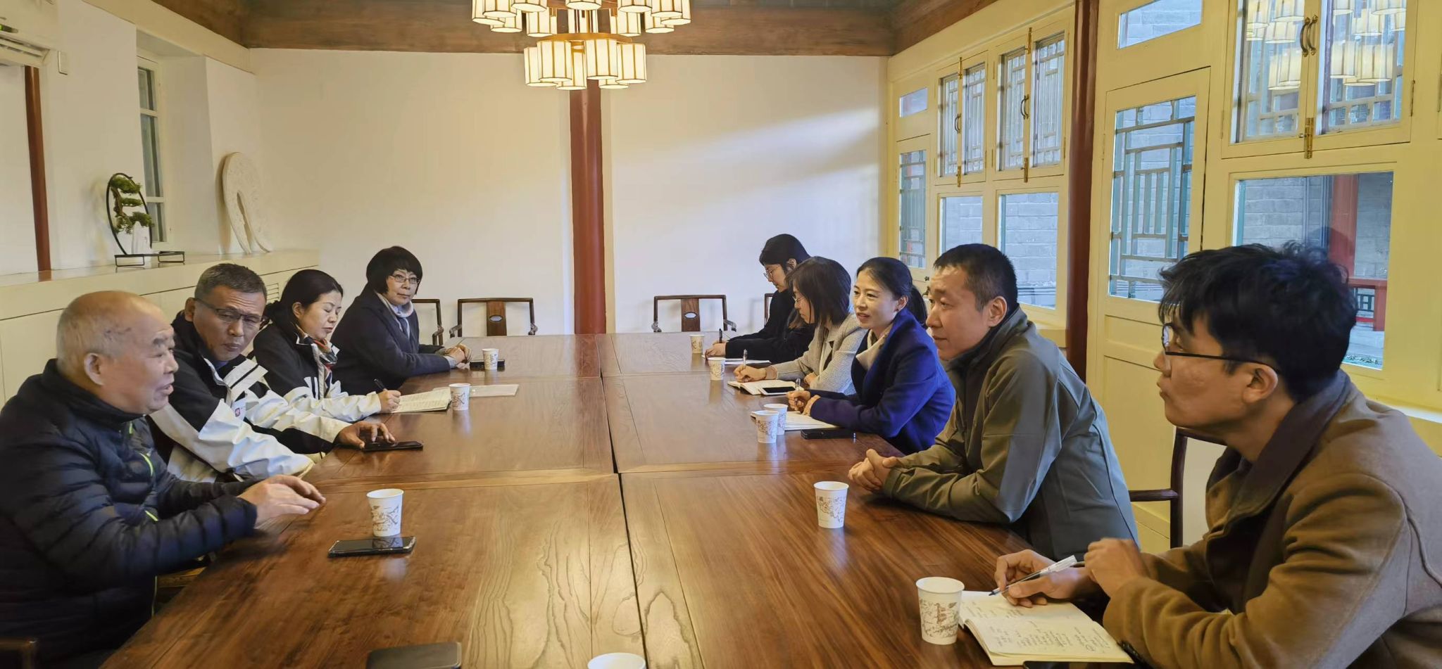 2023年11月9日下午国家开放大学老年学院副院长刘彩梅、教学教务科科长闫俊,国家开放大学艺术学院院长助理牛涛等一行人到访开云kaiyun官方网站,与离退休人员工作办公室工作人员和退休教师代表进行座谈交流。