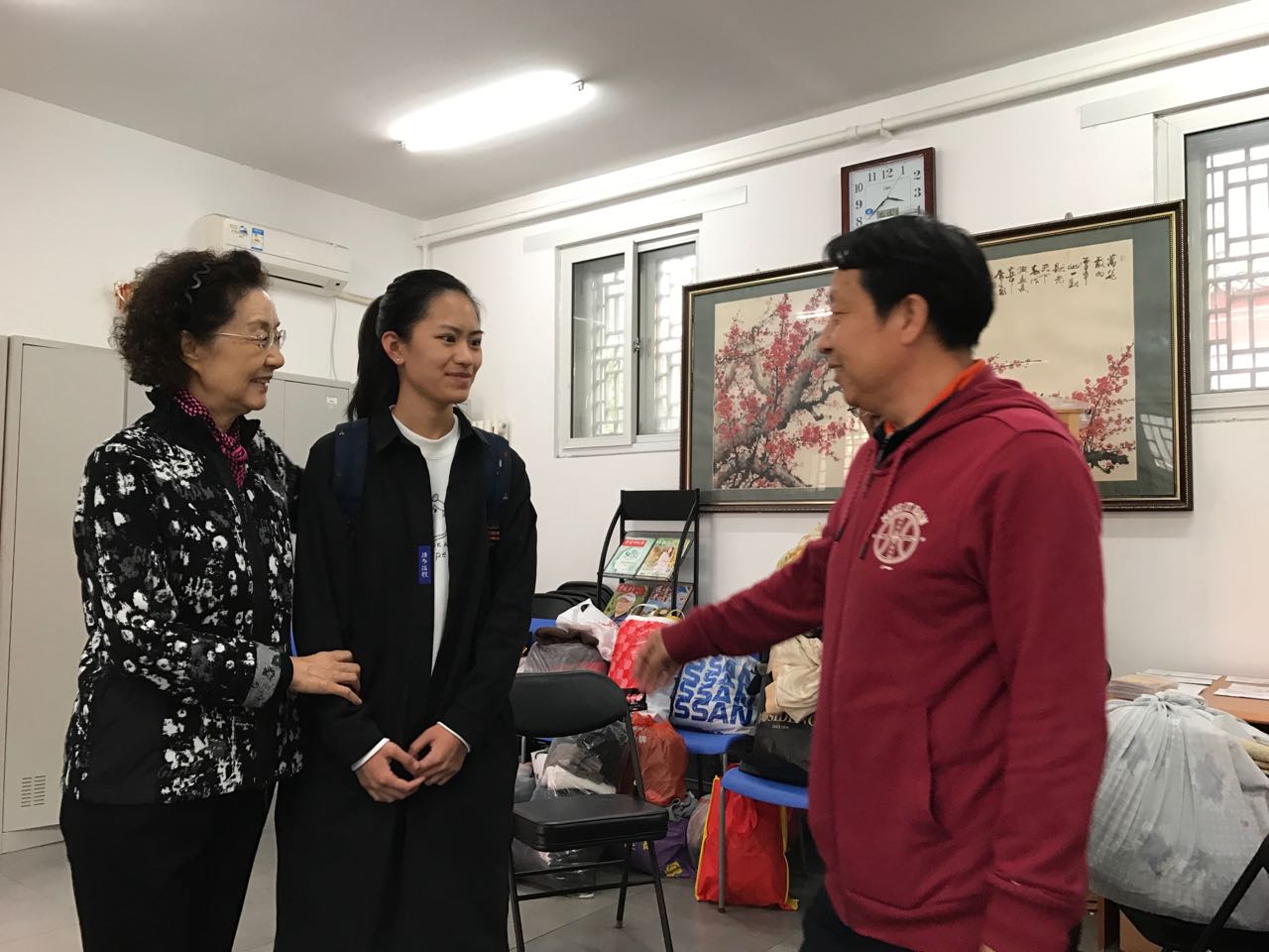 这次活动得到了老干部处的大力支持,给我们提供捐赠的场地,派来了学生志愿者,义务协助我们工作,为捐赠活动做了横幅。老干部处领导王文书、王振国同志还带头捐出了衣物。总之,在大家的共同努力下,此次捐赠活动圆满完成。