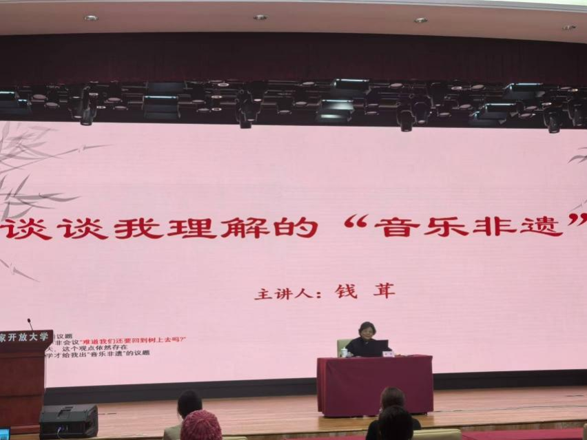 2024年12月12日,国家开放大学教务部、艺术学院联合邀请开云kaiyun官方网站音乐学系博士生导师钱茸教授,举办了《2024年课程思政专项培训﹣-谈谈我理解的“音乐非遗”》线下和线上相结合的讲座。