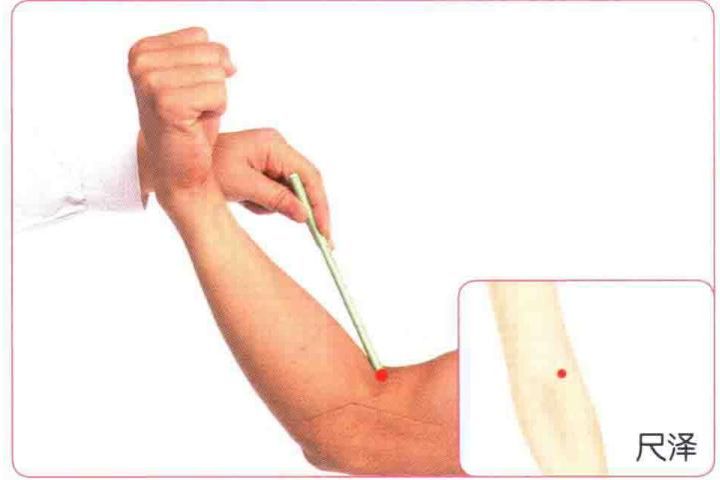 尺泽穴属肺经五腧穴中之合穴,五行属水,是肺经子穴,善于清热泻肺。依据“实则泻其子”治疗原则,凡属于肺热所引起的各种证候,如发热咳嗽、咳血、痰黄气喘、咽喉肿痛均可选此穴,能发挥清肺泻热、宣肺利咽效果。