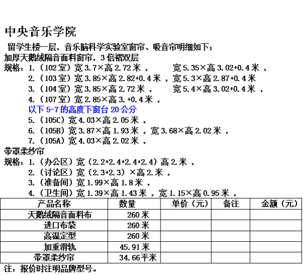 1.比价范围:音乐脑科学实验室窗帘、吸音帘采购安装;