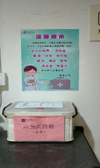 公寓各楼一层为学生准备的应急药箱送到医务室对过期药品进行了更换,制作海报标注药品种类,方便学生使用。