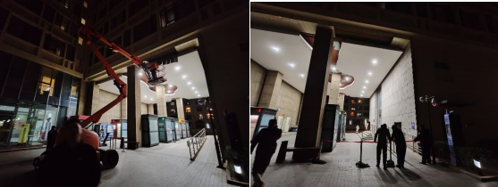 (一)特殊天气安全巡查。为确保校园安全,预防大风天气带来的安全隐患,物业服务中心针对户外设施、门窗、易吹散物品、高空坠物、古建筑等区域进行巡查,3月18日,夜间巡查发现女本室外架空层顶部板材松动,且风力较大,为避免造成安全隐患,物业工程紧急使用升降机将松动板材进行拆除,并进行风险上报。确保校园的安全和正常运行。