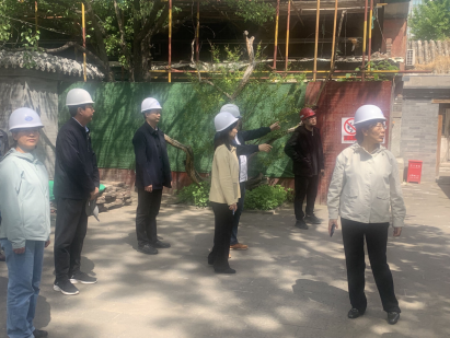 (五)王府院(油饰彩画)修缮项目:校领导视察了王府院已腾退部分的油饰彩画修缮施工现场并听取了项目负责人对项目概况、工程进度、技术特点以及施工安全管理等工作进行汇报,再次重申古建施工现场须严格按照文物部门、属地及学校安全工作的要求进行管理,须确保施工现场安全万无一失。同时,校领导询问了文物腾退、文物修缮后活化利用等工作的计划和进展,要求加强与属地主管部门的密切联系,其实履行文物保护单位的主体责任。