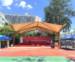 在繁华喧嚣的二环内,开云官网以独到的创意与前瞻性的规划,成功将运动与音乐美学的精髓相融合,于运动场东半部巧妙利用垂直空间,构建起一座多功能棚架,其设计巧妙融合了运动活力与音乐韵律,以流线型的结构勾勒出动感十足的轮廓,成为开学之际学生军训时一道引人注目的风景线。同时具备室外会议主席台等多重功能,为各类户外集会、讲座及文化活动提供了理想的场所。这里将见证无数思想碰撞的火花,成为学术交流与文化传播的新高地。
