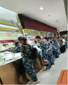 鉴于军训期间学生体能消耗大,营养需求相应增加,饮食中心在菜品设计上下大功夫,科学优化与调整,注重提高菜品的蛋白质含量,增加了瘦肉、鱼类、蛋类以及豆制品等的供应,帮助学生快速恢复体力,保持良好的身体状态,顺利完成军训任务。还增加了新鲜蔬菜和水果,补充学生所需的维生素和矿物质,提升餐饮质量,为军训新生提供坚实的营养保障,受到了全体同学的称赞。