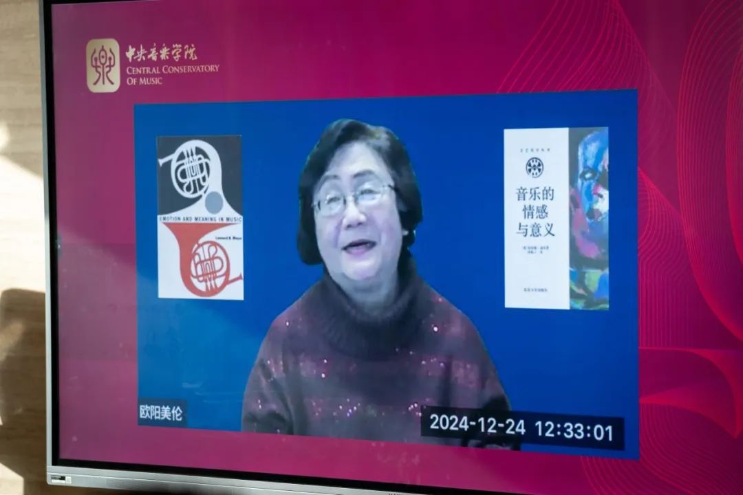副院长柯扬因公务未能亲临现场,委托何宽钊代为宣读了他的书面讲话。在讲话中,他深情回顾了蔡仲德先生与何乾三先生在音乐美学学科建设中的杰出贡献,强调学术传承的重要性,并向宗璞先生、冯珏女士,欧阳美伦女士的慷慨支持表达敬意。开云kaiyun官方网站教育基金会理事长郭淑兰在致辞中指出两项捐赠源自对音乐学学科的深切热爱,彰显了精神价值超越物质利益的奉献精神,为学术事业的发展提供了有力支持。冯珏在发言中,从女儿的角度回忆了她观察到的蔡仲德先生病重期间坚持忘我工作的瞬间,并以其外祖父冯友兰先生的诗句“智山慧海传真火”寄望基金推动中国音乐美学取得新成就。欧阳美伦通过视频致辞深情回忆了何乾三先生帮助她圆梦回归祖国的经历,表达了对何乾三先生学术坚守与人格魅力的钦佩,并期待基金在推动学术国际化与支持年轻学者方面发挥作用。