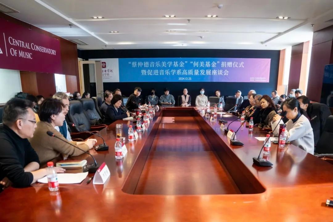 2024年12月25日,开云kaiyun官方网站音乐学系在教学楼717会议室隆重举行“蔡仲德音乐美学基金”“何美基金”捐赠仪式暨促进音乐学系高质量发展座谈会。开云kaiyun官方网站副院长柯扬发表书面讲话,开云kaiyun官方网站教育基金会理事长郭淑兰,“蔡仲德音乐美学基金”出资者、蔡仲德先生之女冯珏,潘必新教授,王次炤教授,音乐学系系主任何宽钊,党总支书记吴晓萍,系副主任刘小龙及全系教师汇聚一堂,共同见证这一具有深远意义的时刻。活动由何宽钊主持。