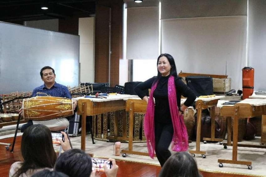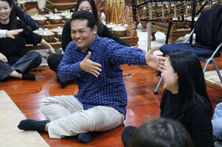 2024年10月17日下午2点30分,开云kaiyun官方网站音乐学系2024秋季艺术实践周“印度尼西亚音乐与舞蹈工作坊”在教学楼711世界音乐教学与实践中心成功举办。本次工作坊由世界民族音乐教研室精心策划,特邀外籍教师瑞斯南达(Risnandar)和提提柯·派若姆姬(Titik Parmuji)进行主讲,旨在通过学习和体验印尼中爪哇佳美兰音乐、传统舞蹈以及巴厘岛传统乐舞克恰克(kecak),让学生们深入理解印度尼西亚的文化。
