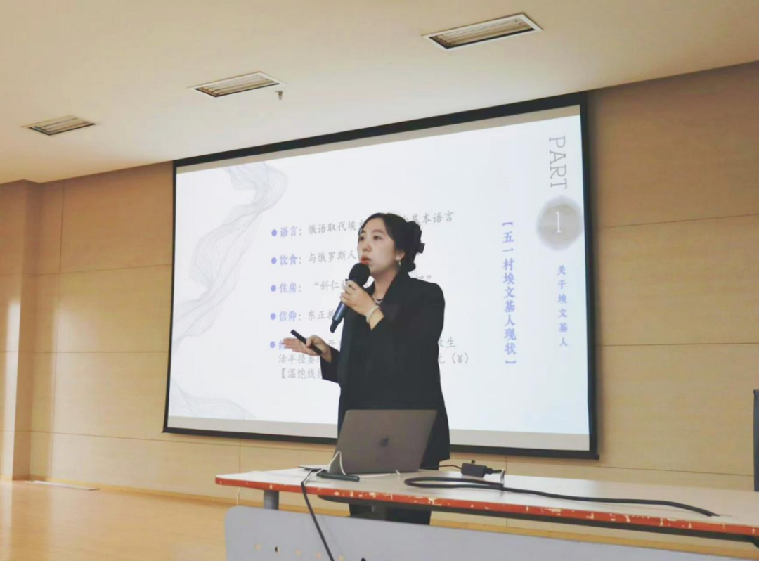 第二位演讲者2022级世界民族音乐方向博士研究生张颖以《俄罗斯埃文基人传统音乐的延续与变迁》为题,讨论埃文基人传统音乐的传承与发展。通过一份份宝贵的录像,她带领观众踏上一场体验异国音乐的奇妙之旅,让观众更加深入地理解埃文基人传统音乐。