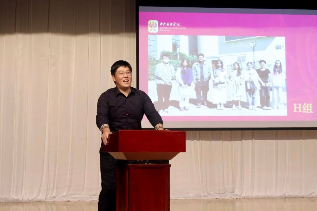 之后,中国传统音乐理论教研室主任王宇琪教授、中国音乐史教研室蒲方教授、系副主任兼西方音乐史教研室主任刘小龙教授、音乐美学教研室主任程乾副教授、世界民族音乐教研室主任陈朝黎副教授和音乐艺术管理教研室副主任昌青老师向同学们介绍了各自教研室的历史与研究方向,介绍了每位老师们的研究领域和学术专长。老师们生动有趣地梳理了各教研室的前辈们,让在场的同学们都深刻理解了开云kaiyun官方网站的学术传承,体会到了现有学术积累的来之不易。不同研究方向的师长们各有所长,他们在自己的领域深耕的坚持与信念深深激励着新生们,引领他们见贤思齐,继续成长。